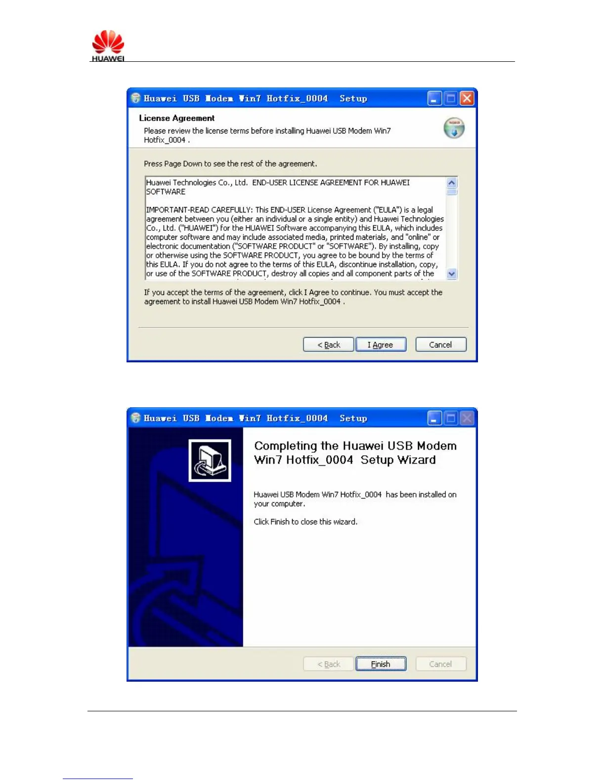 Huawei USB modem - License Agreement and Completion; Review License Terms; Complete Hotfix Installation