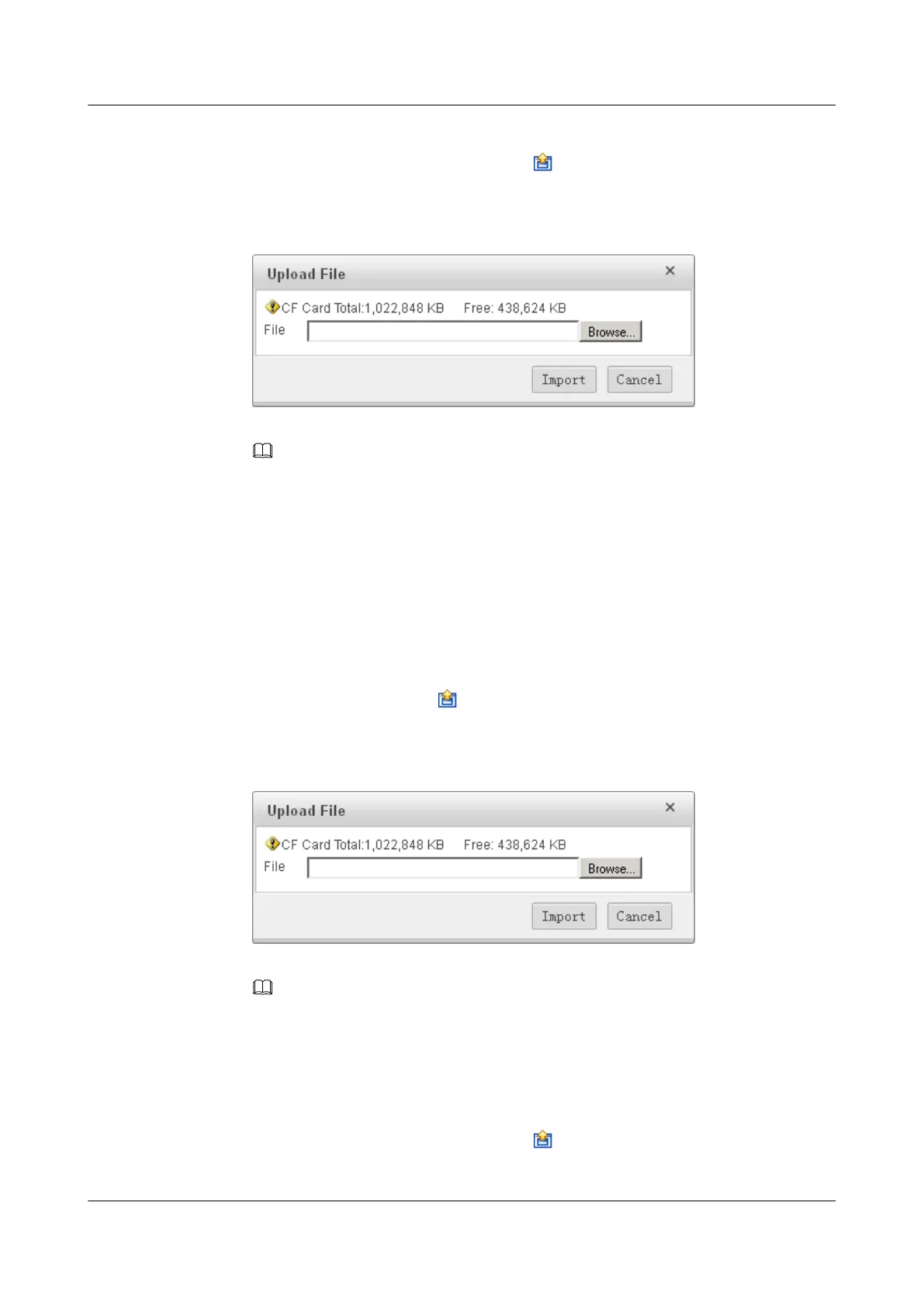 Management interface is displayed. Click . The Upload File dialog box is displayed.