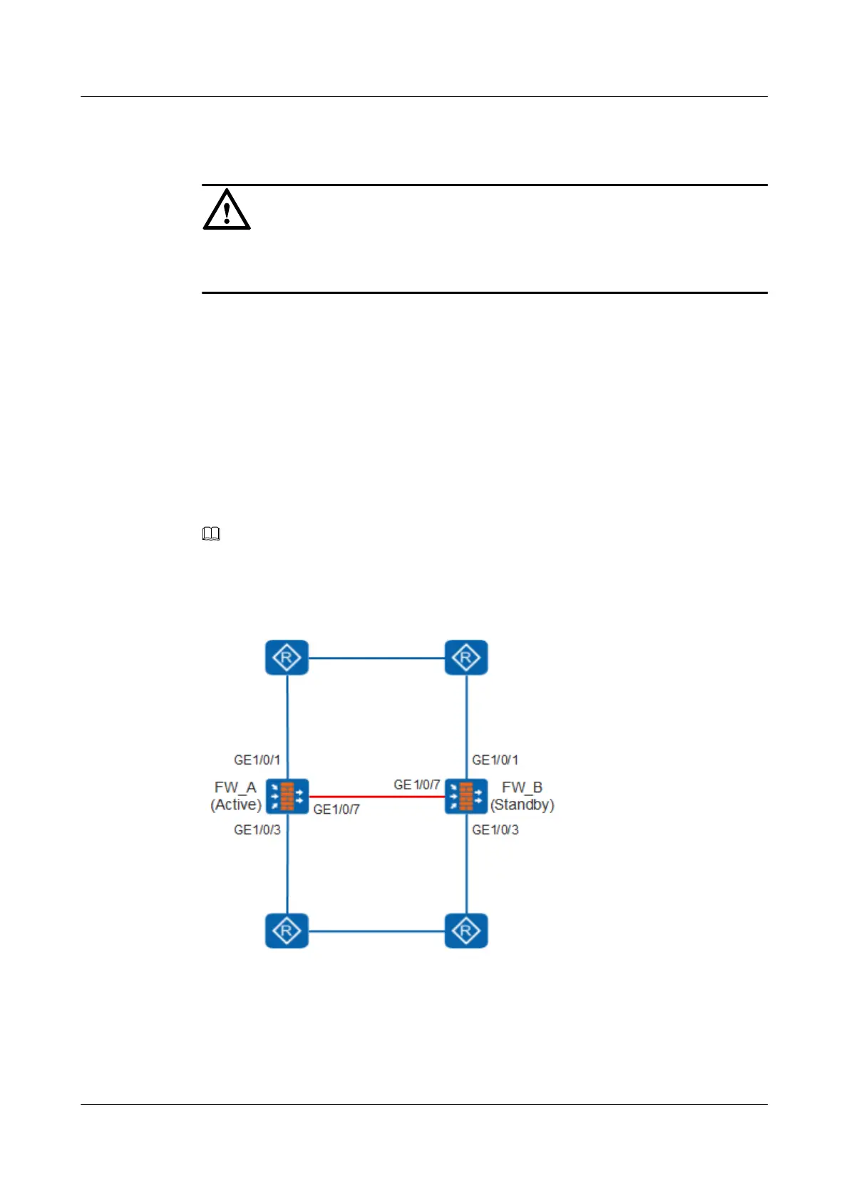 As shown in Figure 1-43, two FWs work in active/standby mode. GE1/0/7 is the heartbeat