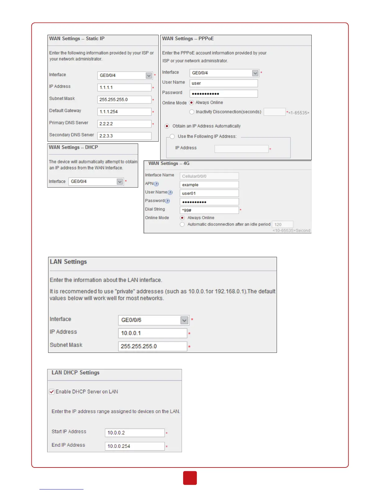 Huawei USG6305 - WAN Settings; LAN Settings; LAN DHCP Settings