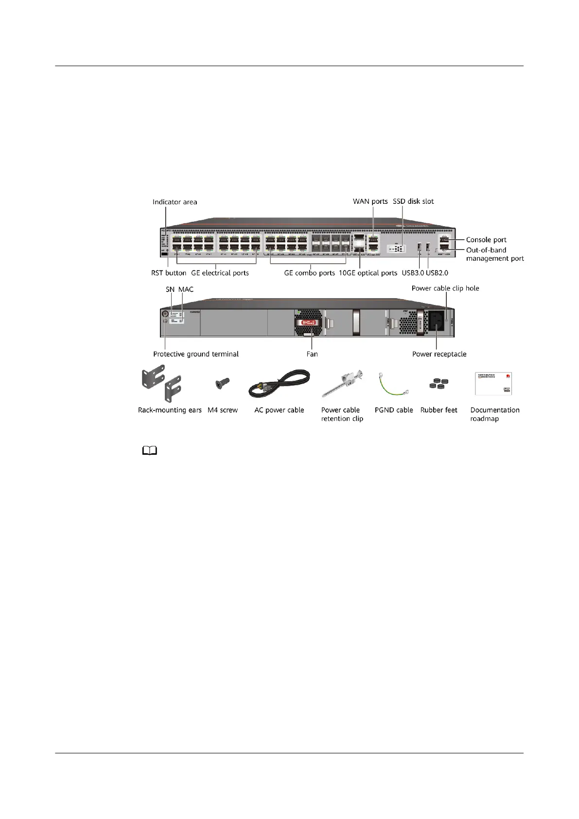 Figure 2-7 Appearance and auxiliary materials of the USG6515E, USG6550E,