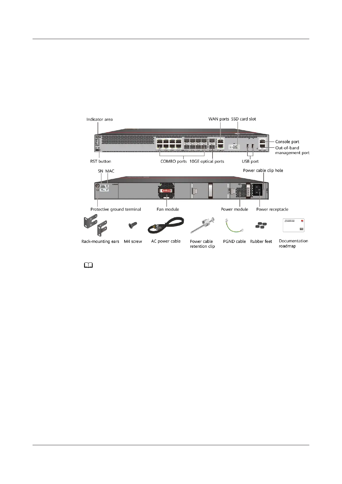 Figure 2-5 Appearance and auxiliary materials of the USG6525E, USG6555E,