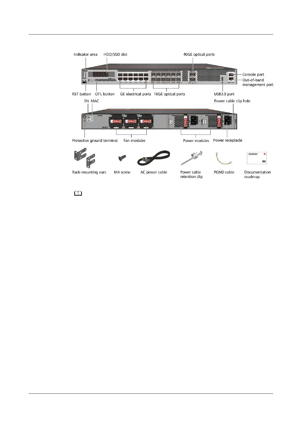 Figure 2-15 Appearance and auxiliary materials of the USG6630E, USG6650E