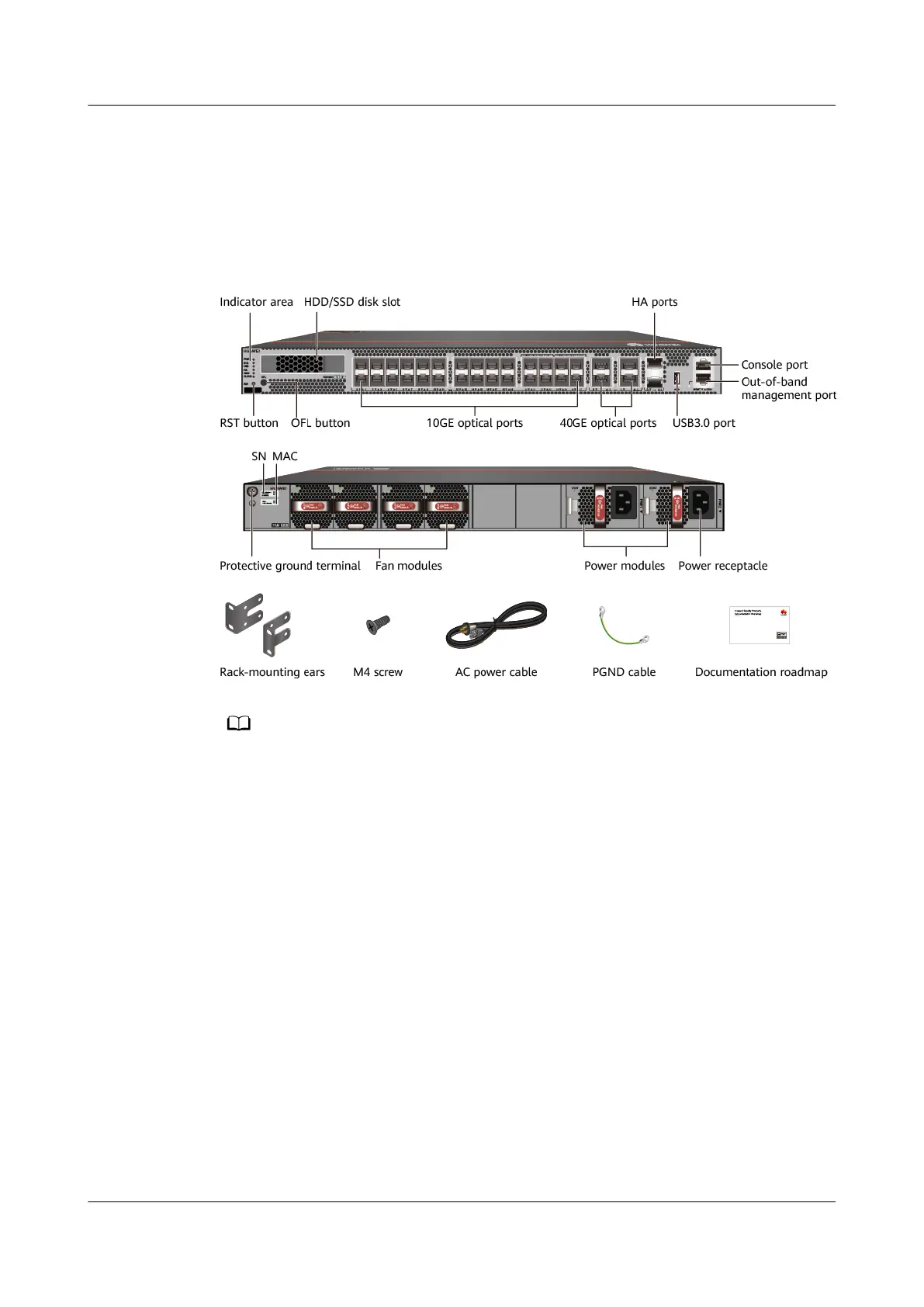 Figure 2-19 Appearance and auxiliary materials of the USG6680E