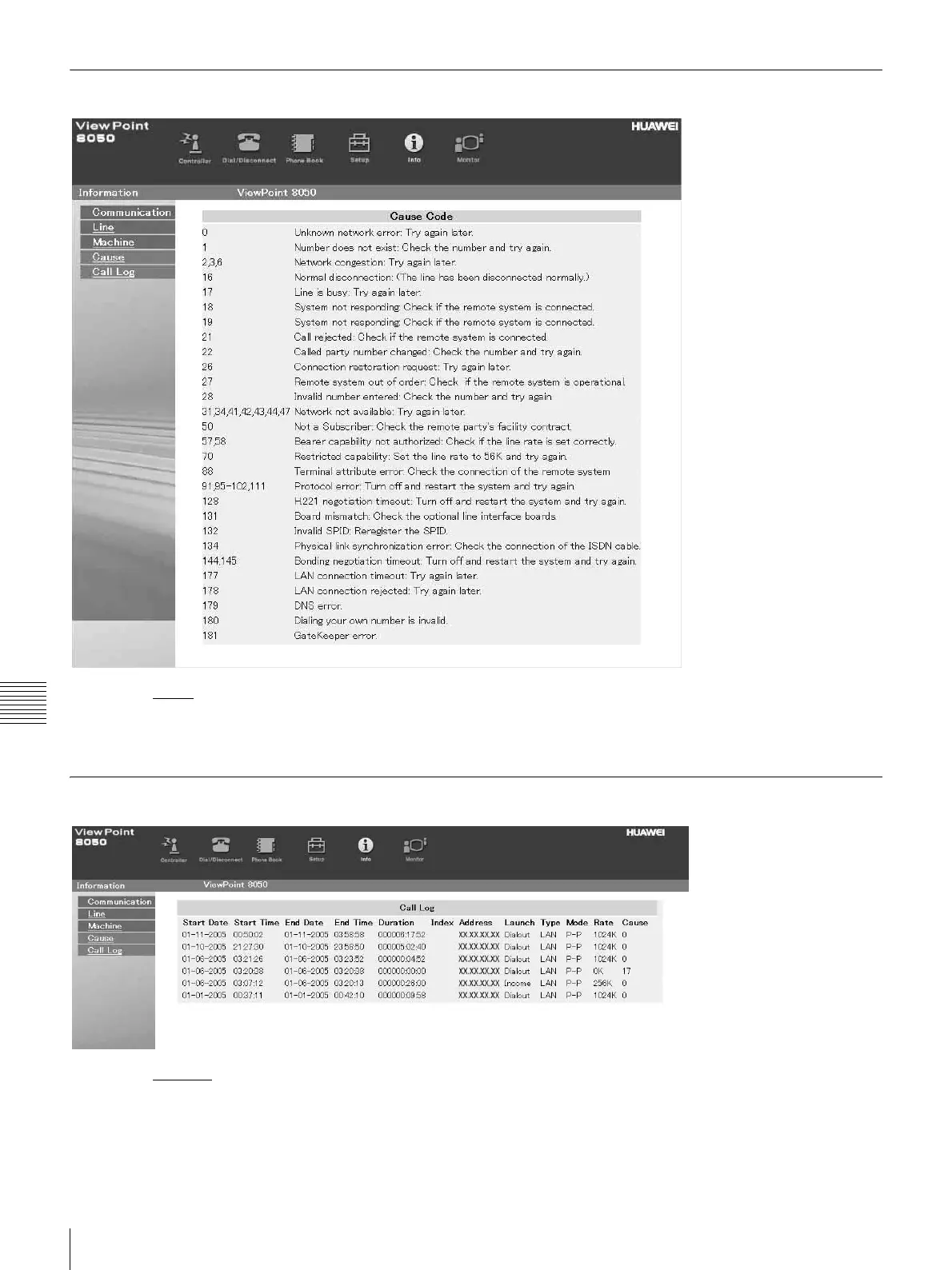 jump to the “Call Log” page (only when “VP8050” has