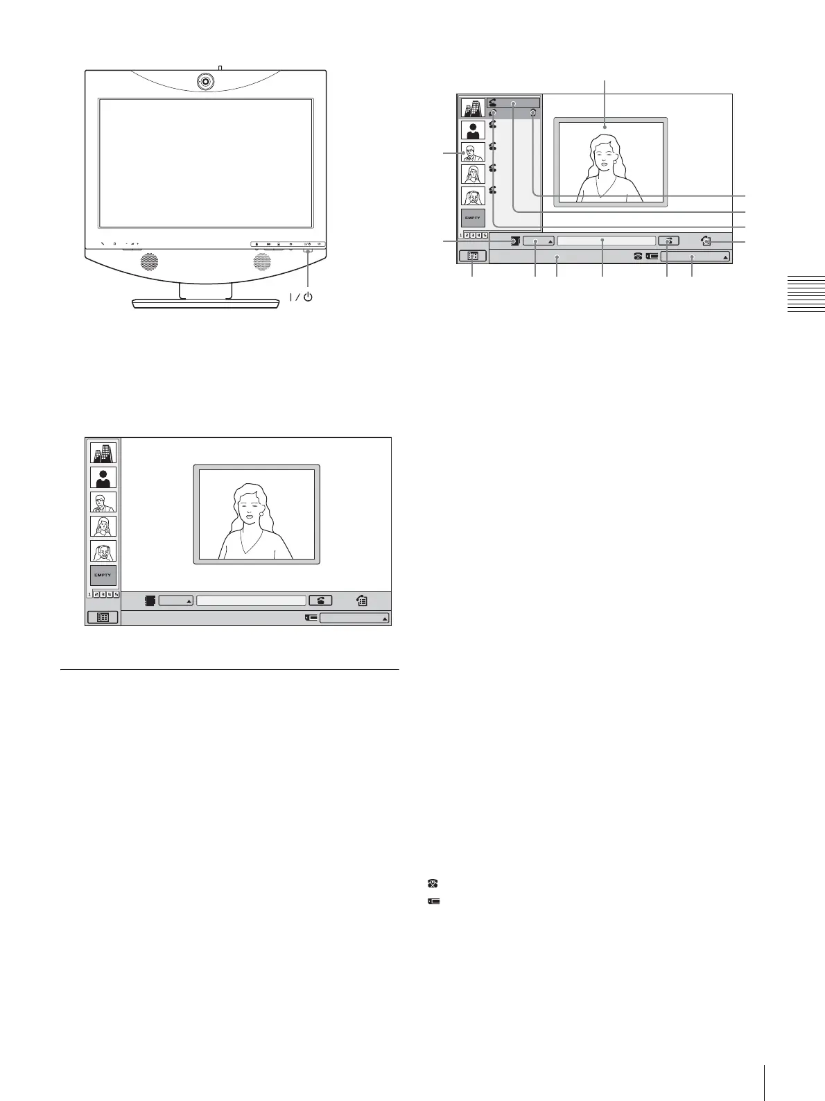 local camera, local system status, buttons to open the