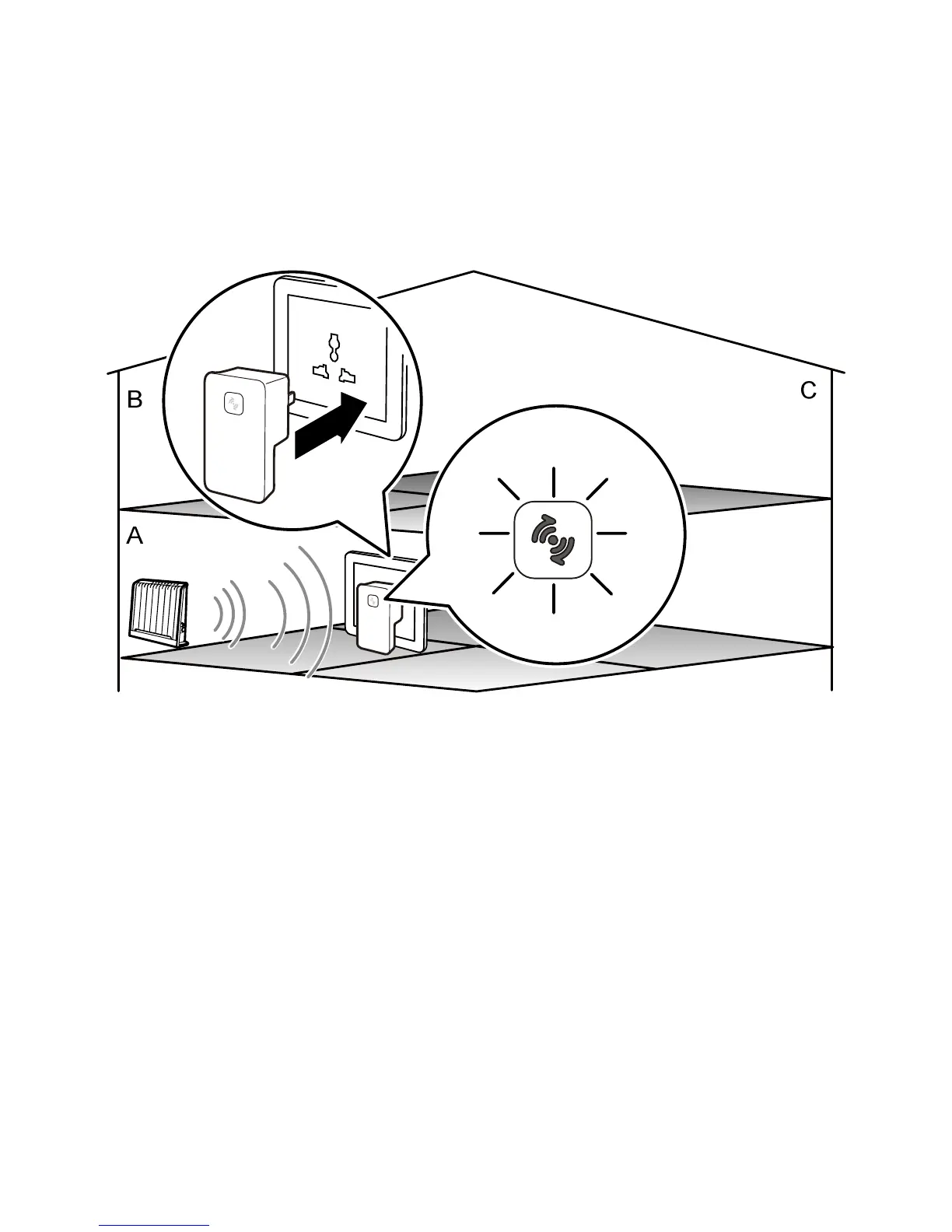 In Room A, connect the WS320 to a power socket near the wireless router.