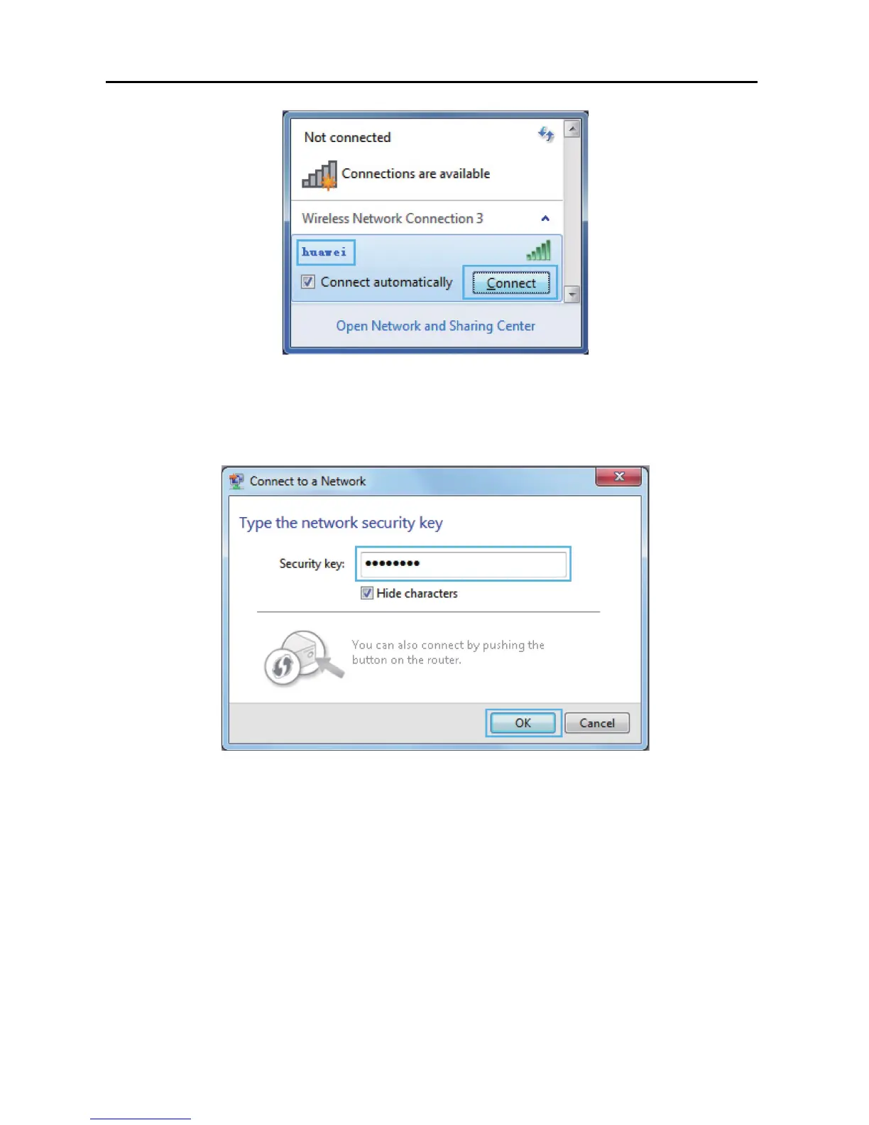 Step 3 In the displayed dialog box, enter the WLAN password and click OK.