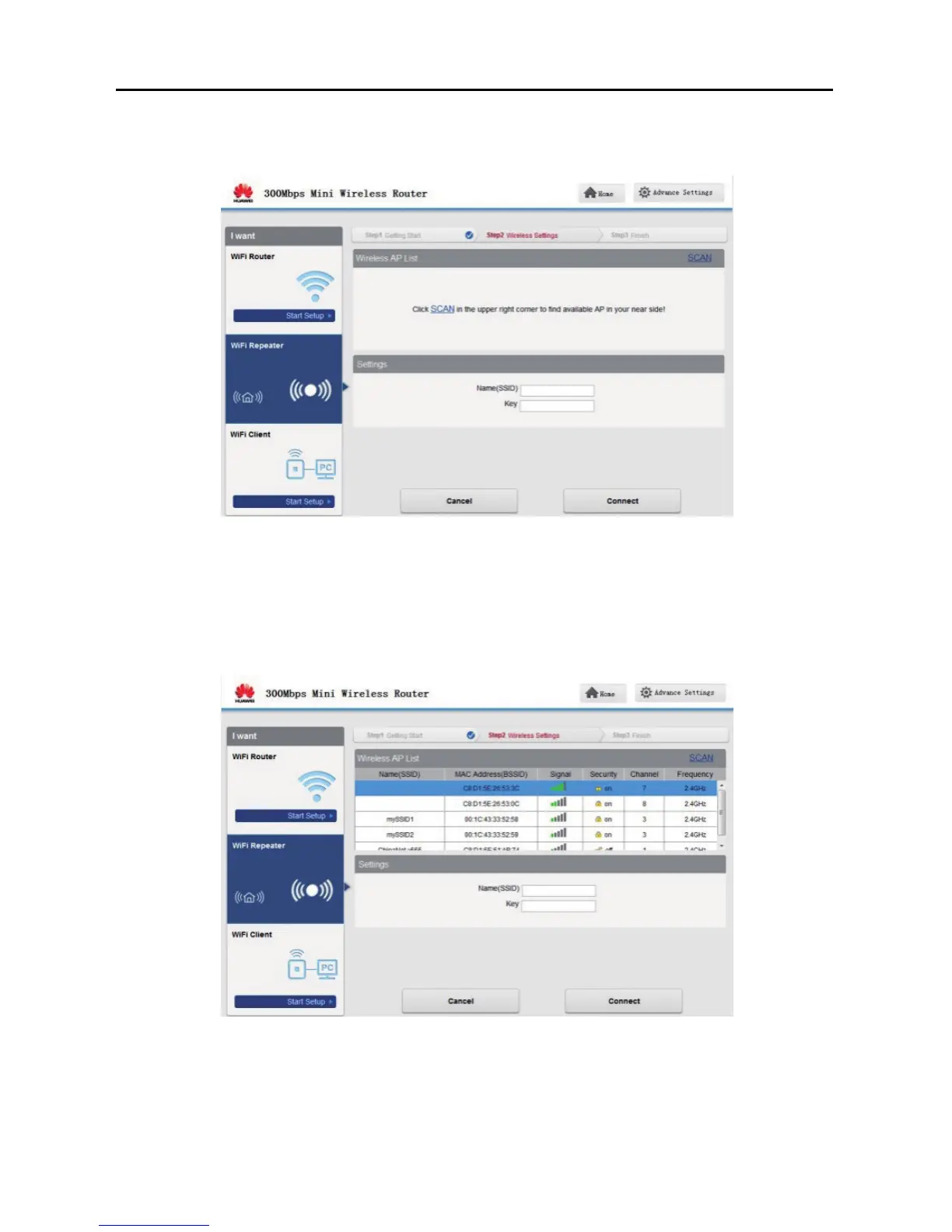 Step 5 Choose the network SSID and configure the network connection