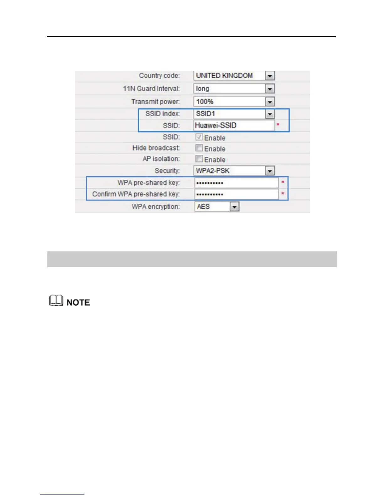 Step 6 In WPA pre-shared key, enter the WLAN password you specified.