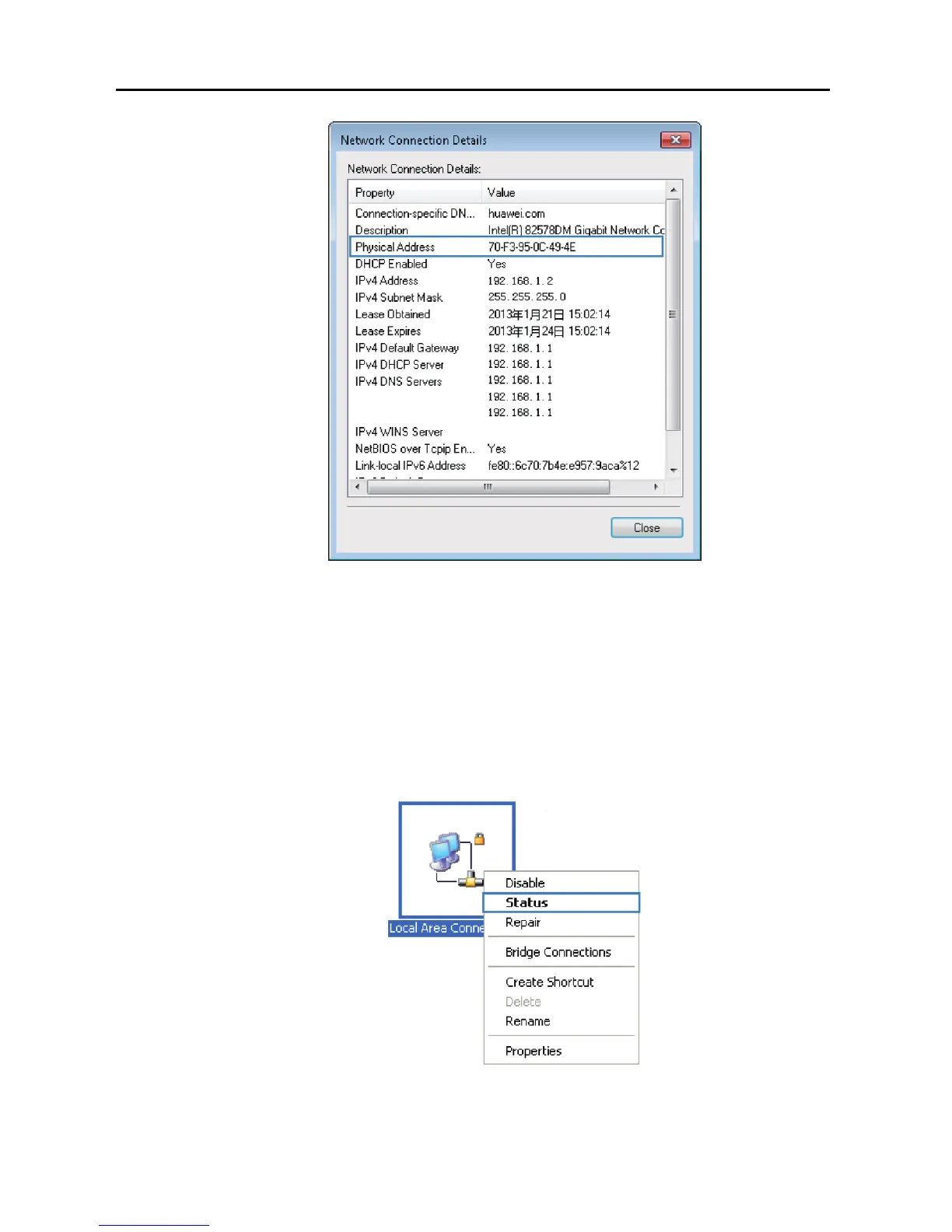 Network Connections. Right-click Local Area Connection and choose