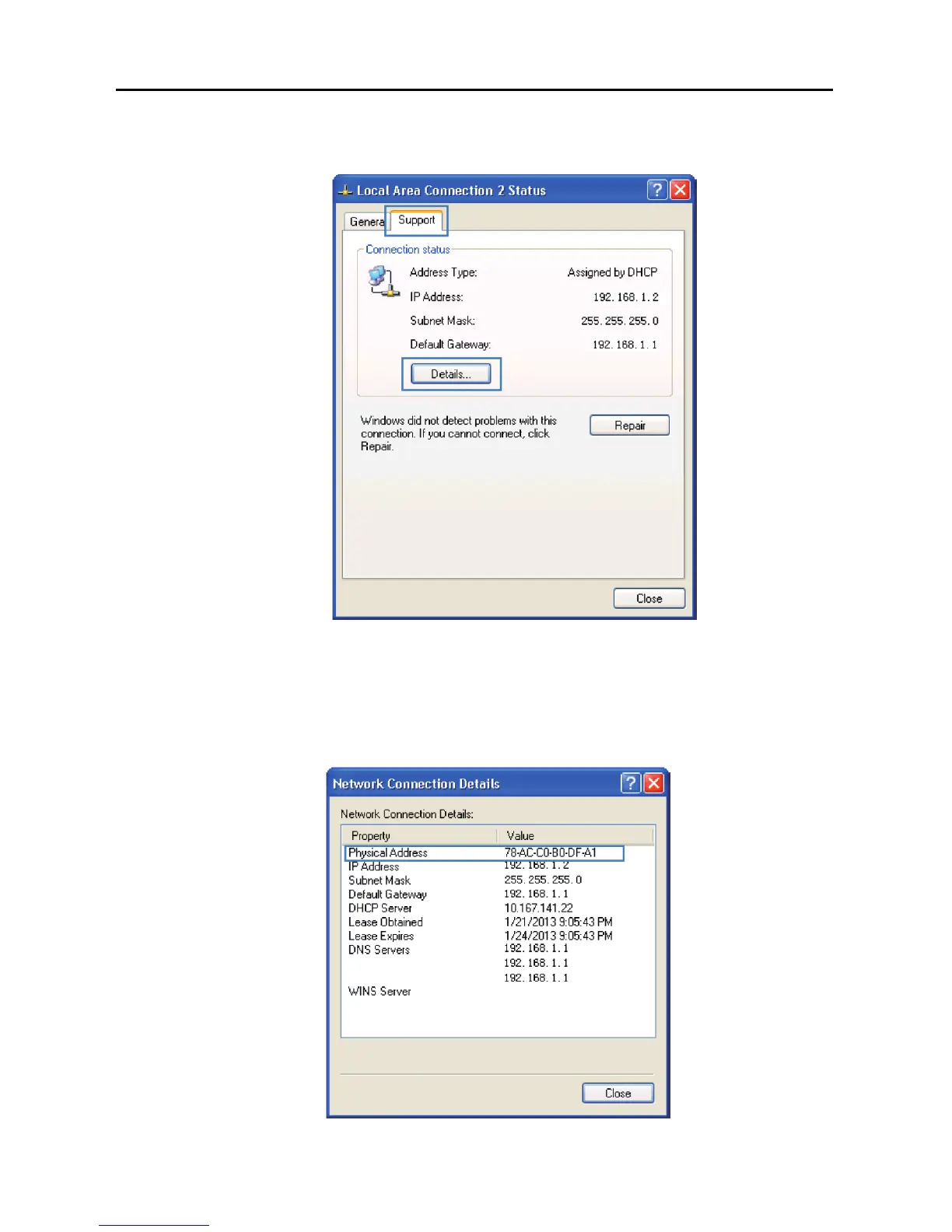 Step 2 Click the Support tab. Under Connection status, click Details.