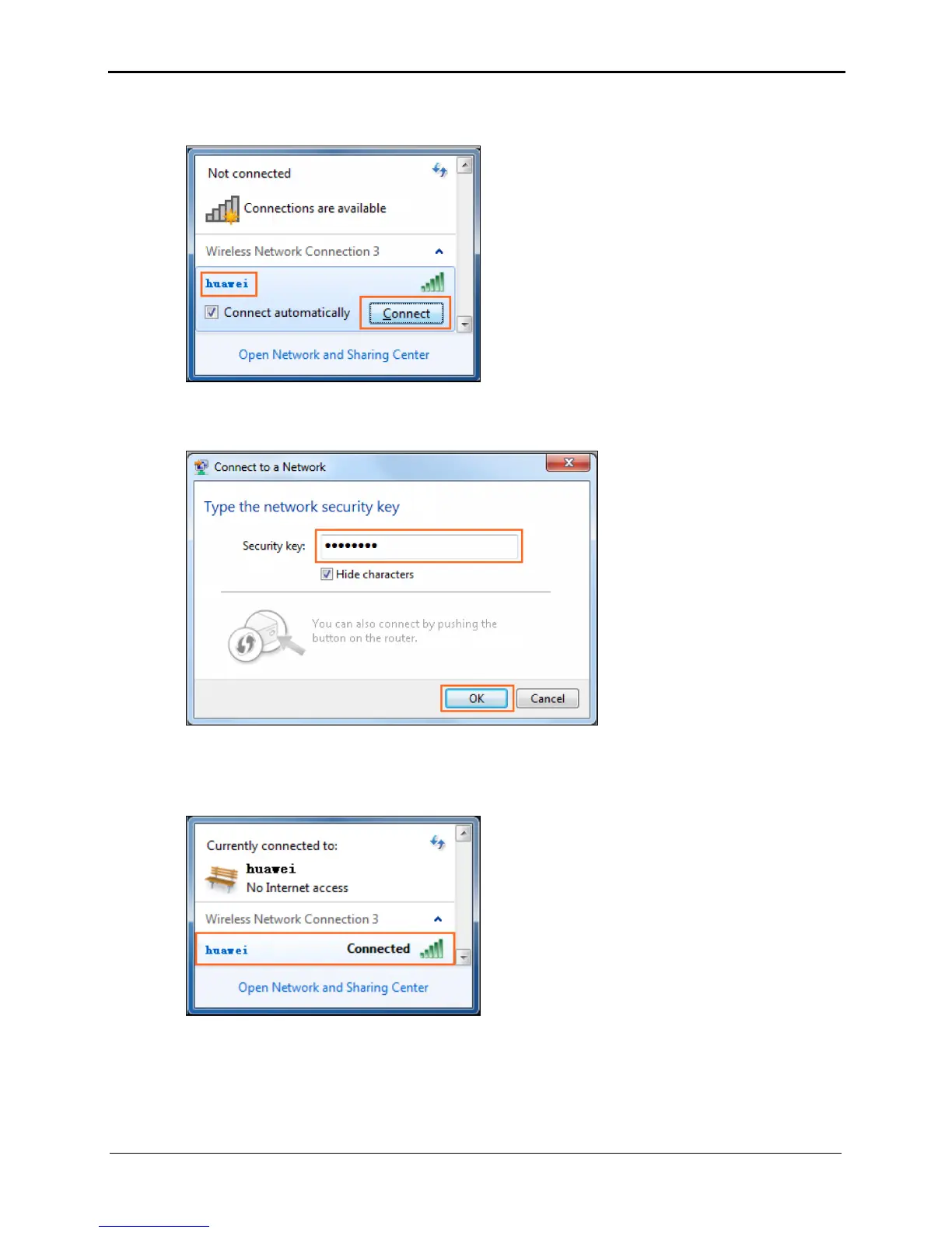 From the wireless network list, click the SSID set when you configured the router, and