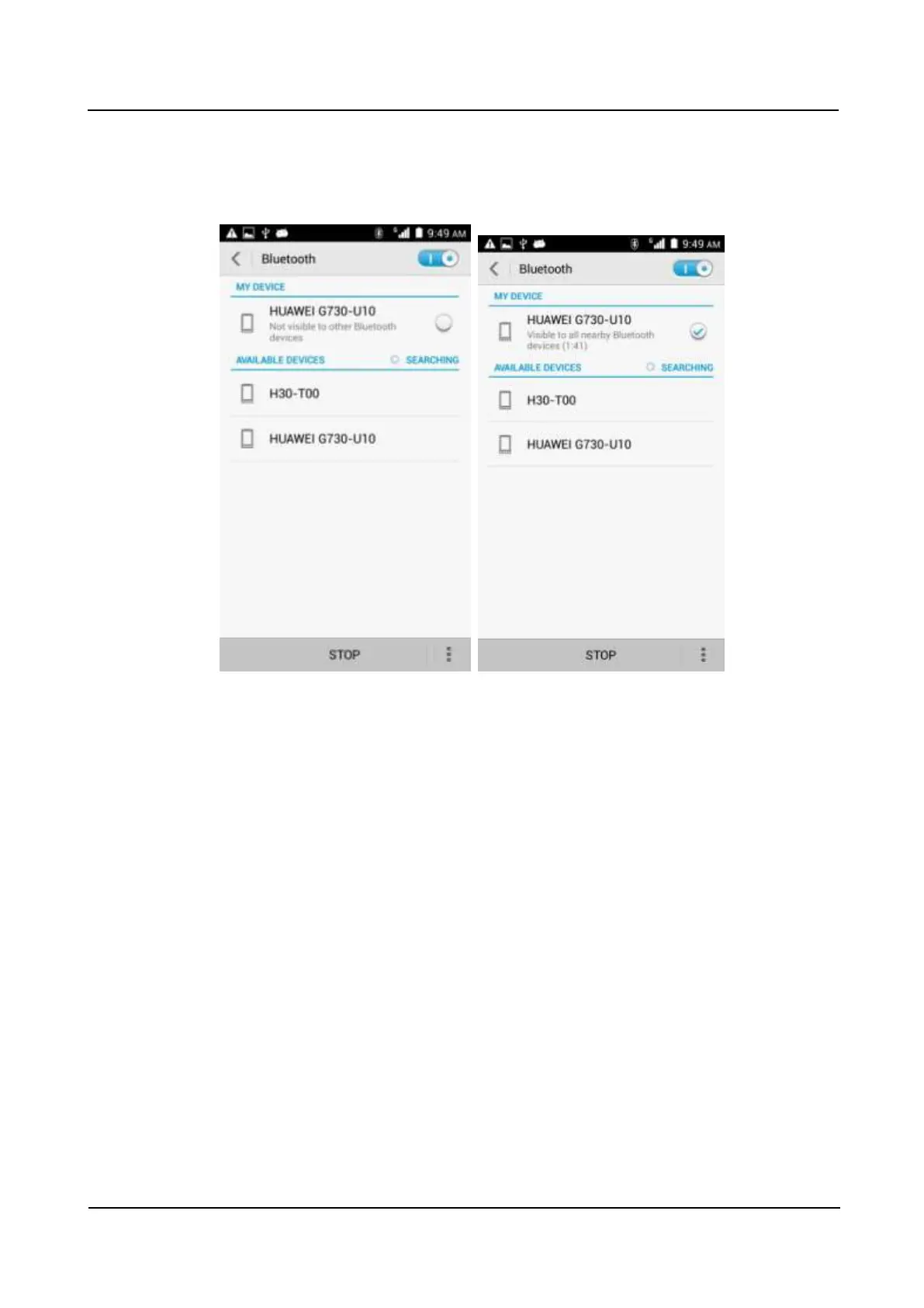 Bluetooth screen, touch your device name (for example, HUAWEI Y330 in the