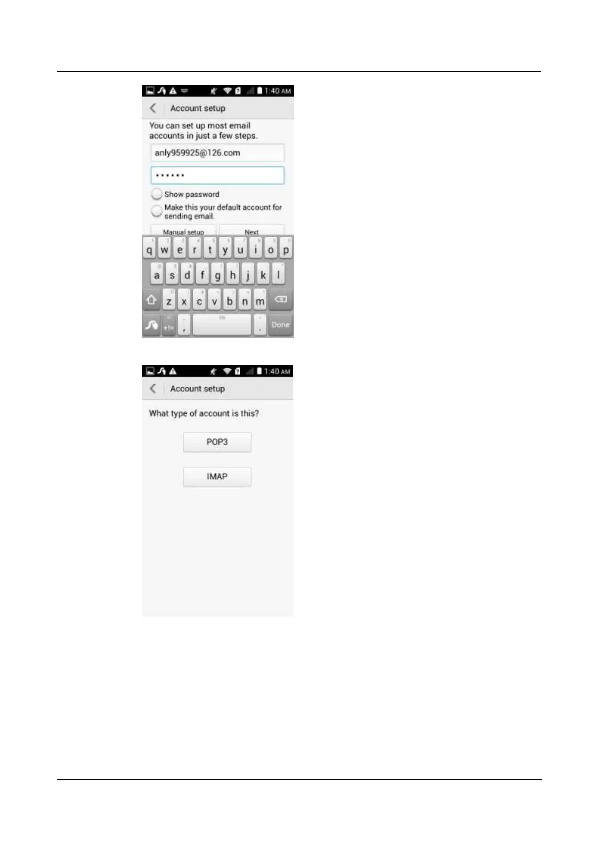 3. Touch POP3 to display the following screen.