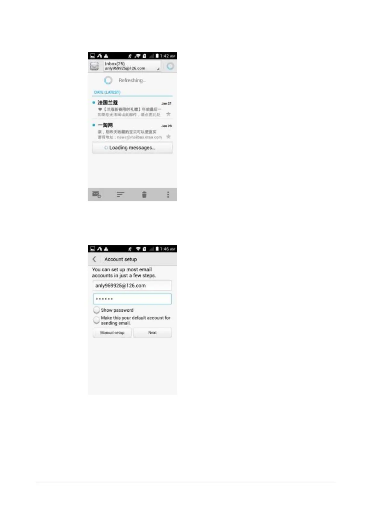 8. On the account setting screen, enter your email account and password.