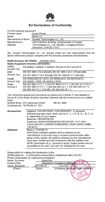 Huawei Y6 2017 - Declaration of Conformity
