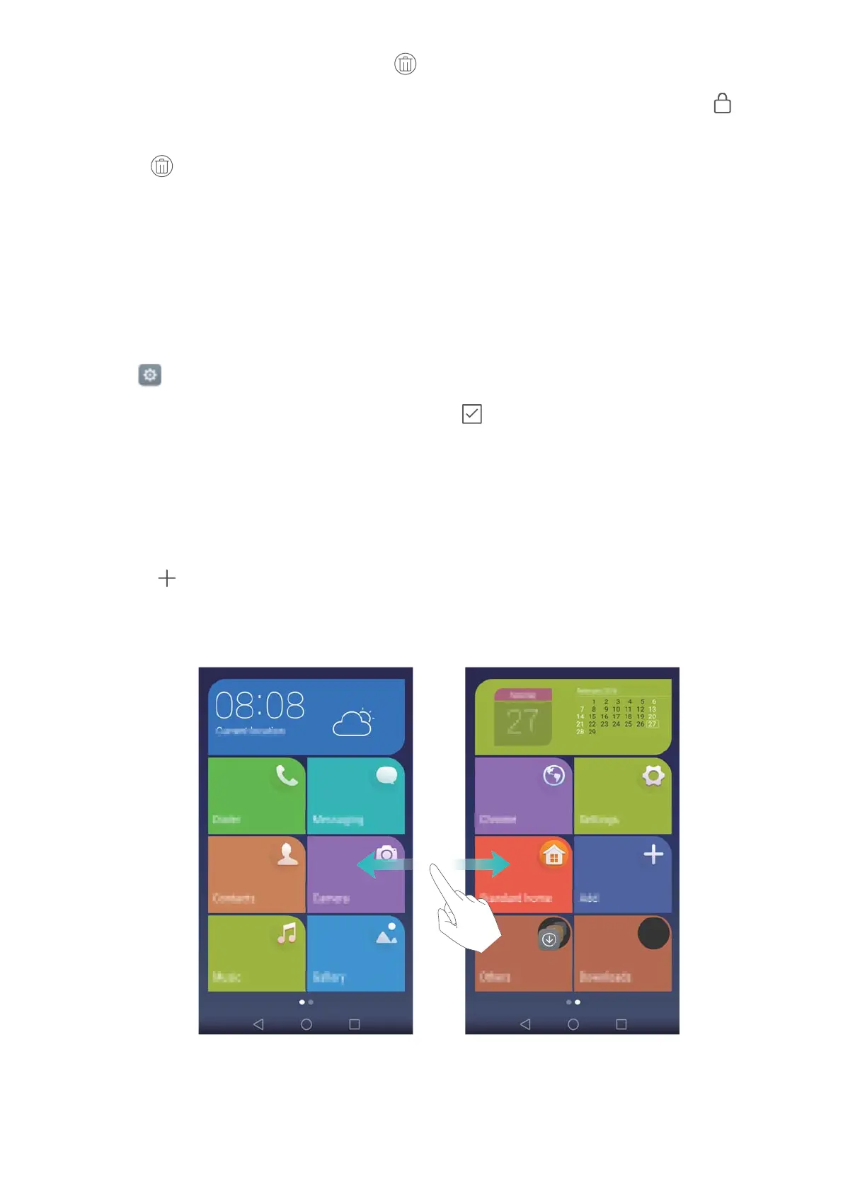 l Touch and hold an icon to open the home screen editor and add or delete application icons.