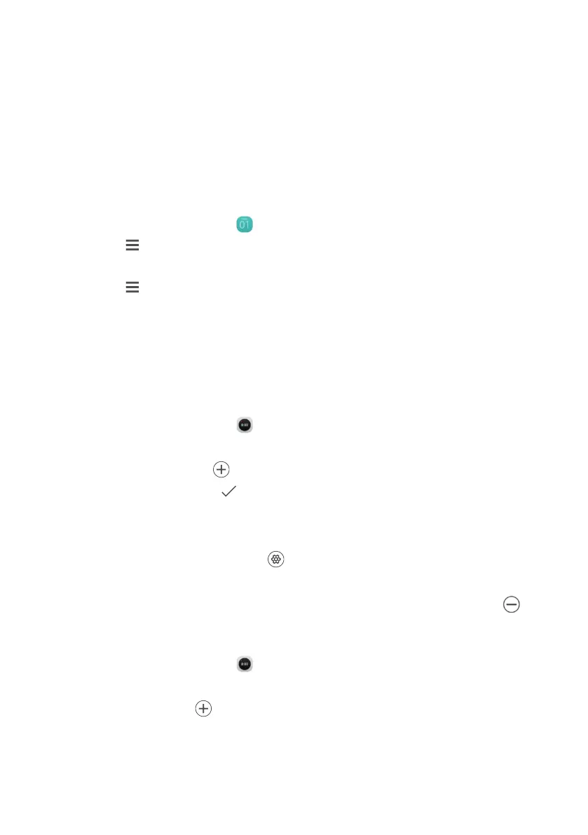 Add an alarm: Touch , and set the alarm time, ringtone, how often it repeats,