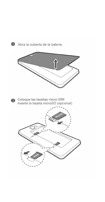 tarjeta micro-SIM, la tarjeta microSD y la batería. Apague el