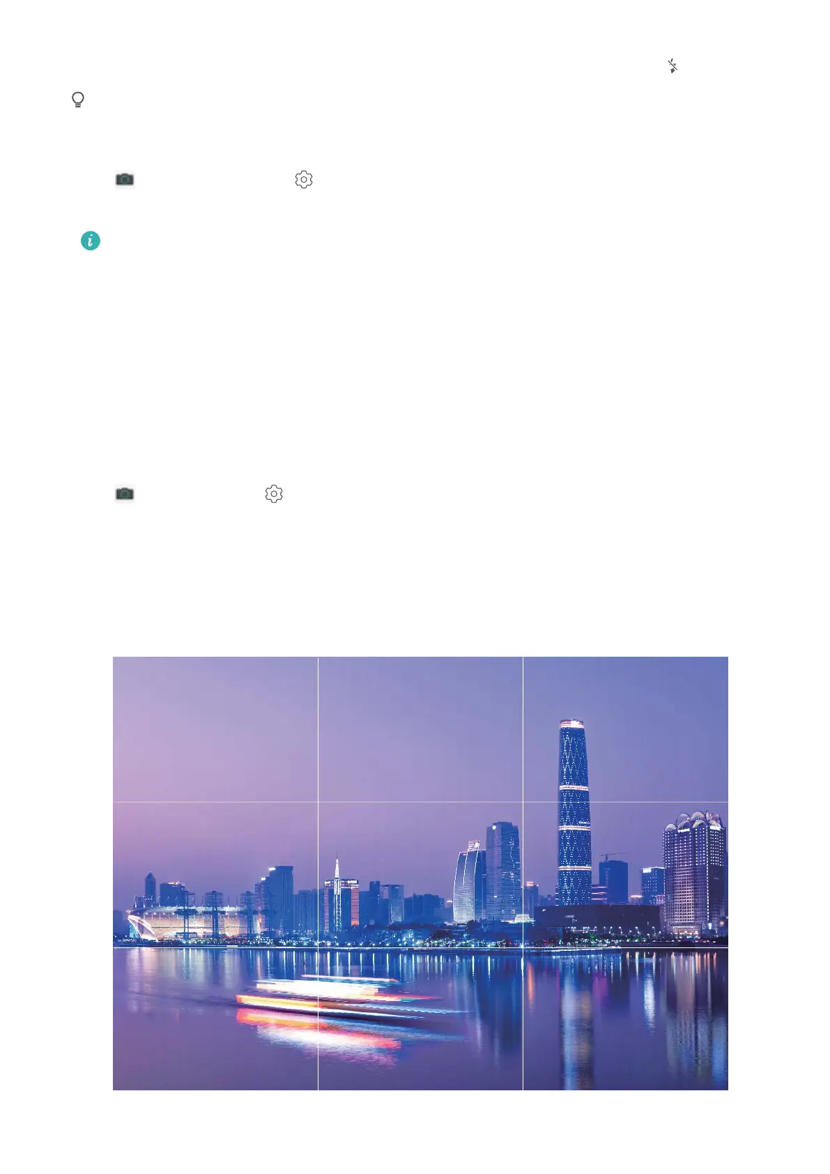 Open Camera, touch to enter the Settings screen, and enable Assistive grid. Grid