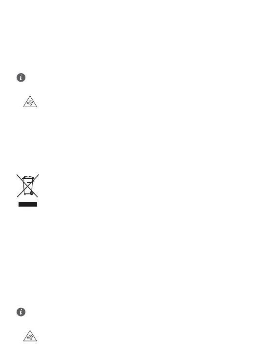 • Da bi preprečili morebitno poškodbo sluha, ne poslušajte dlje časa pri veliki glasnosti.