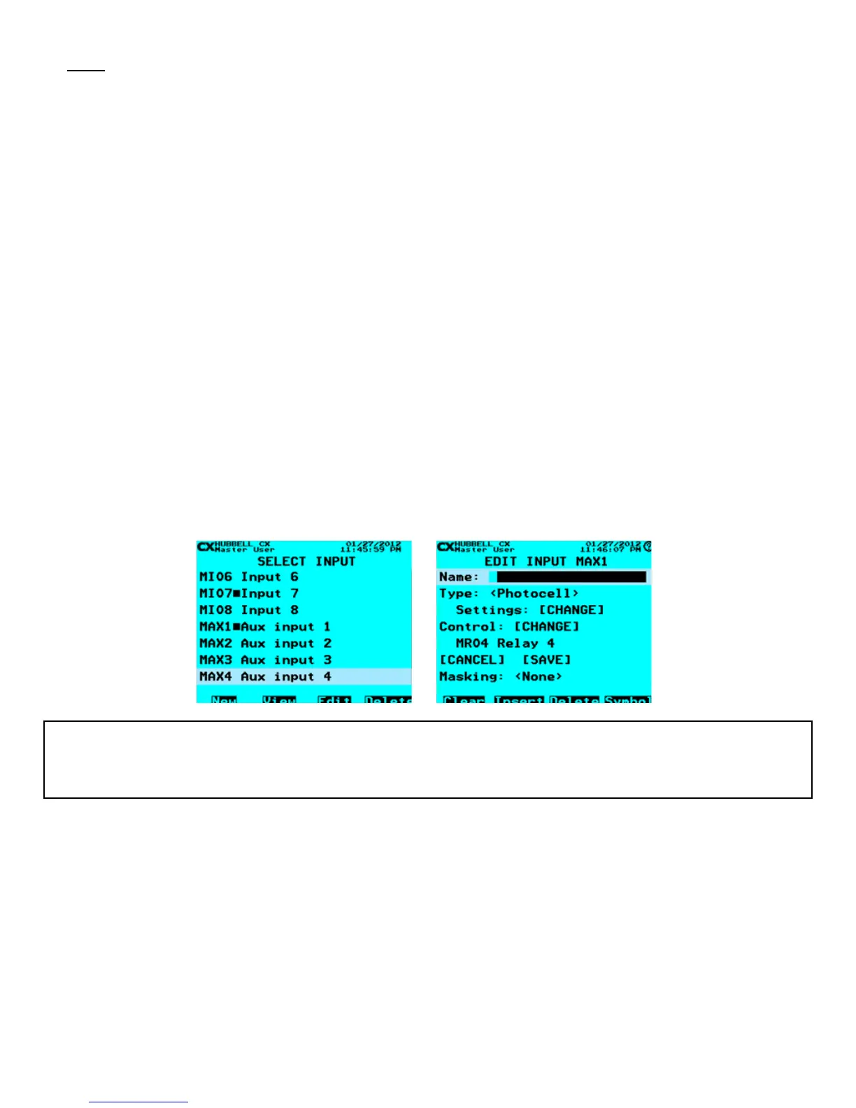 the input selection screen as “MAXX” for Master Panels and 4-Relay Stand Alone panels OR “SAXX” for Secondary Panels.