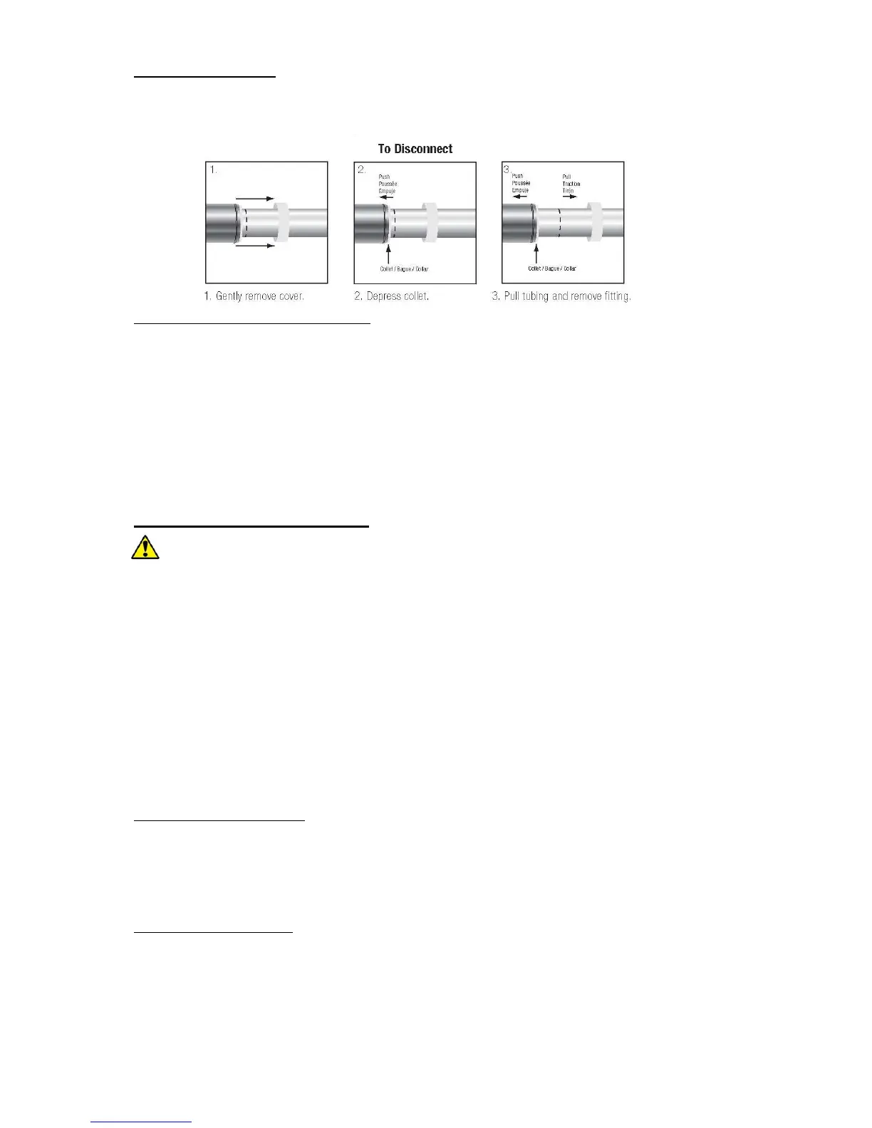 • Depress the collet of the quick-connect fitting and pull the tubing to remove the quick-