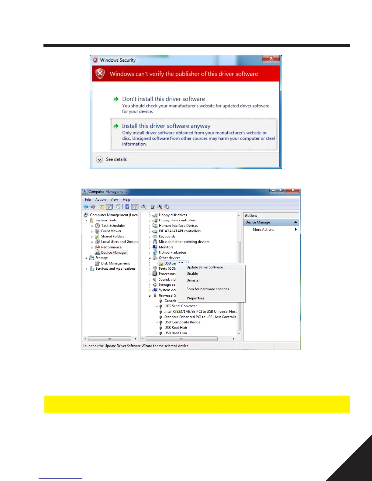 8. Repeat from Step 3 to 7 for an item called “USB Serial Port”; drivers are now installed.