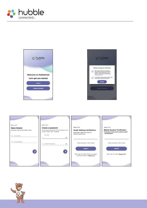 • Run HubbleClub by Hubble Connected App, tap Create Account with