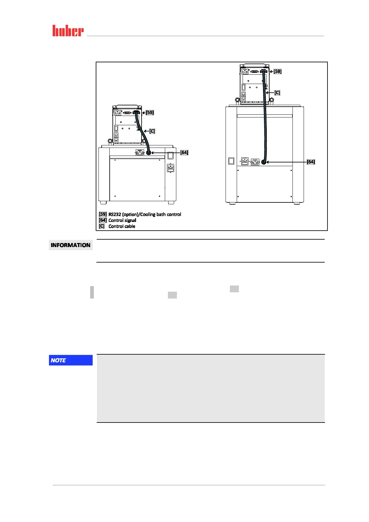 Connect the >RS232 (option)/activation cooling bath< [59] port on the hanger thermostat with