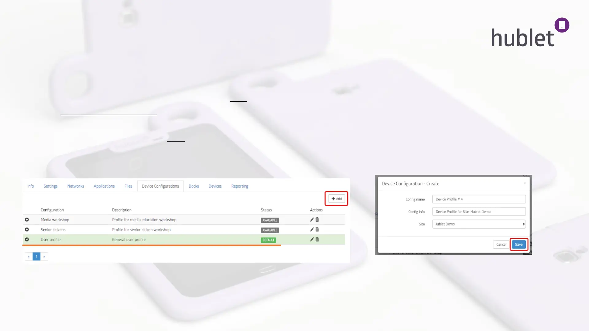 User profiles are known as device configurations in the Hublet Manager. You can create different profiles to offer