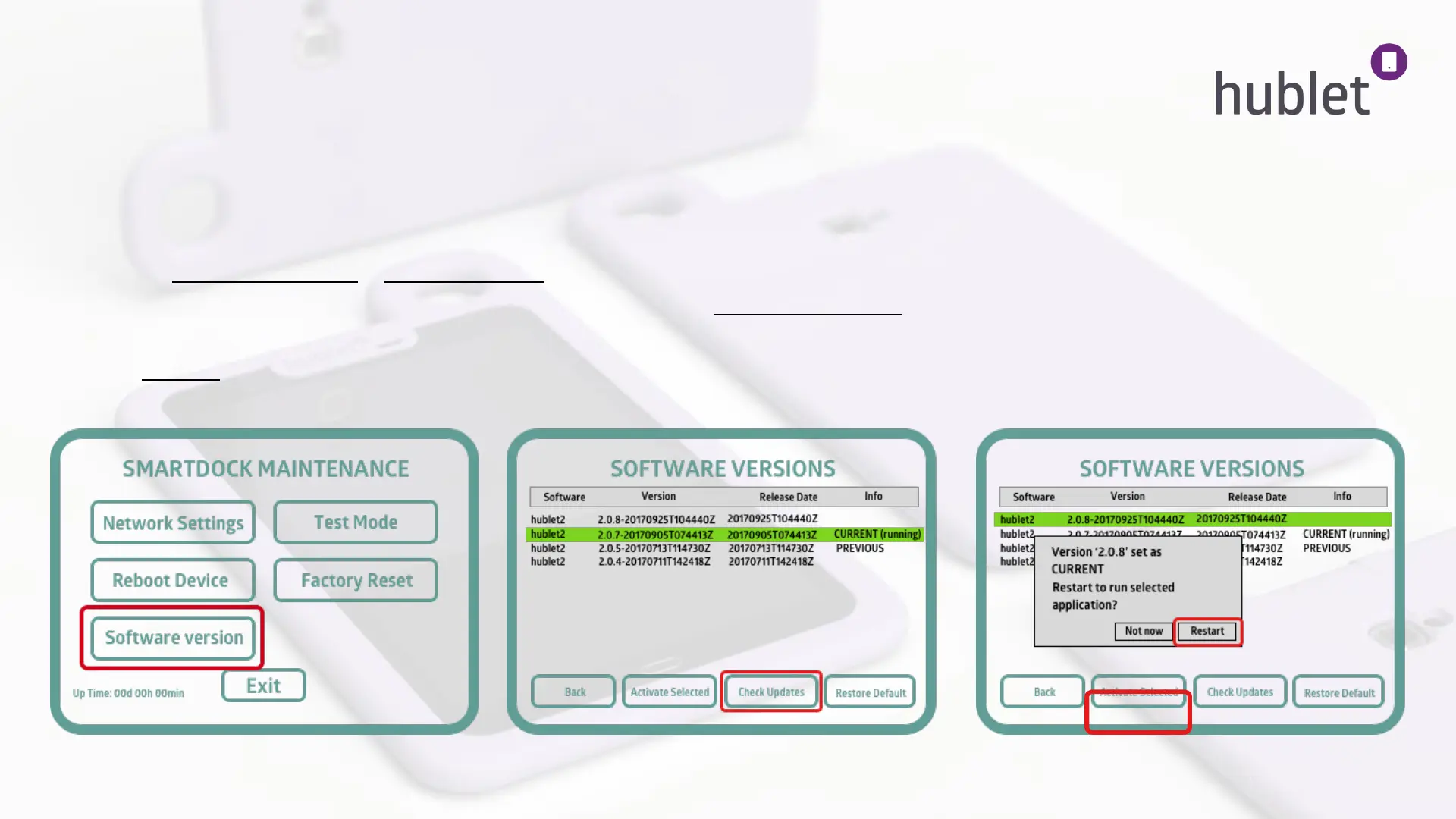 2. Choose Software version > Check updates, and the dock will show a list of available software versions.
