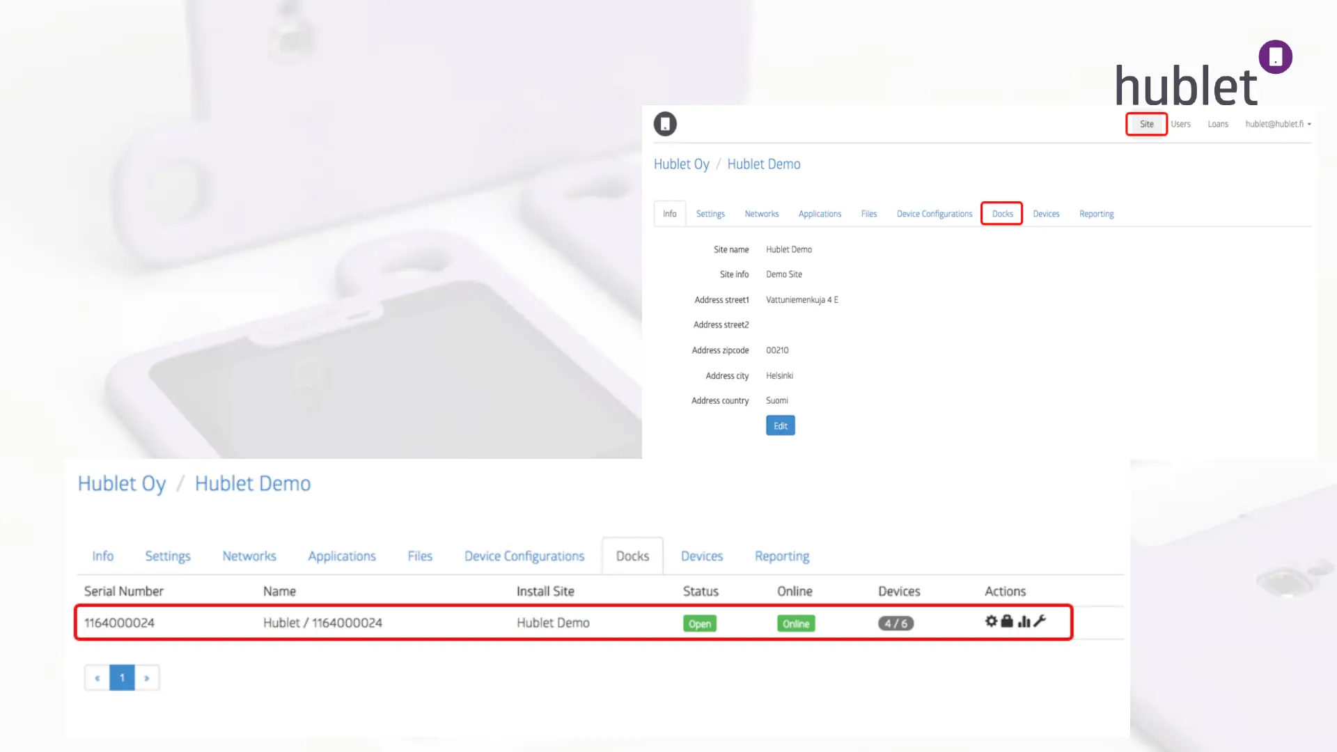 View: Hublet Manager > Site > Docks