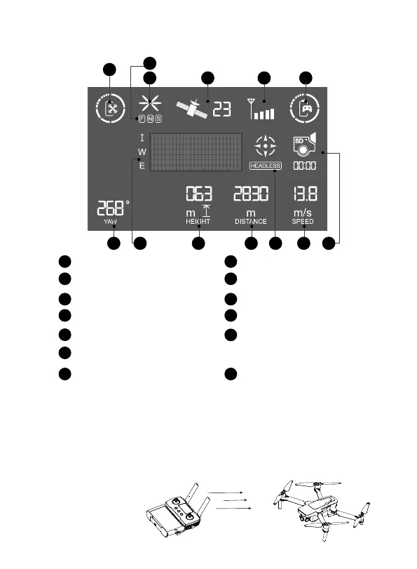 (1) Adjust the angle of the remote control antenna and try to face the flight direc-