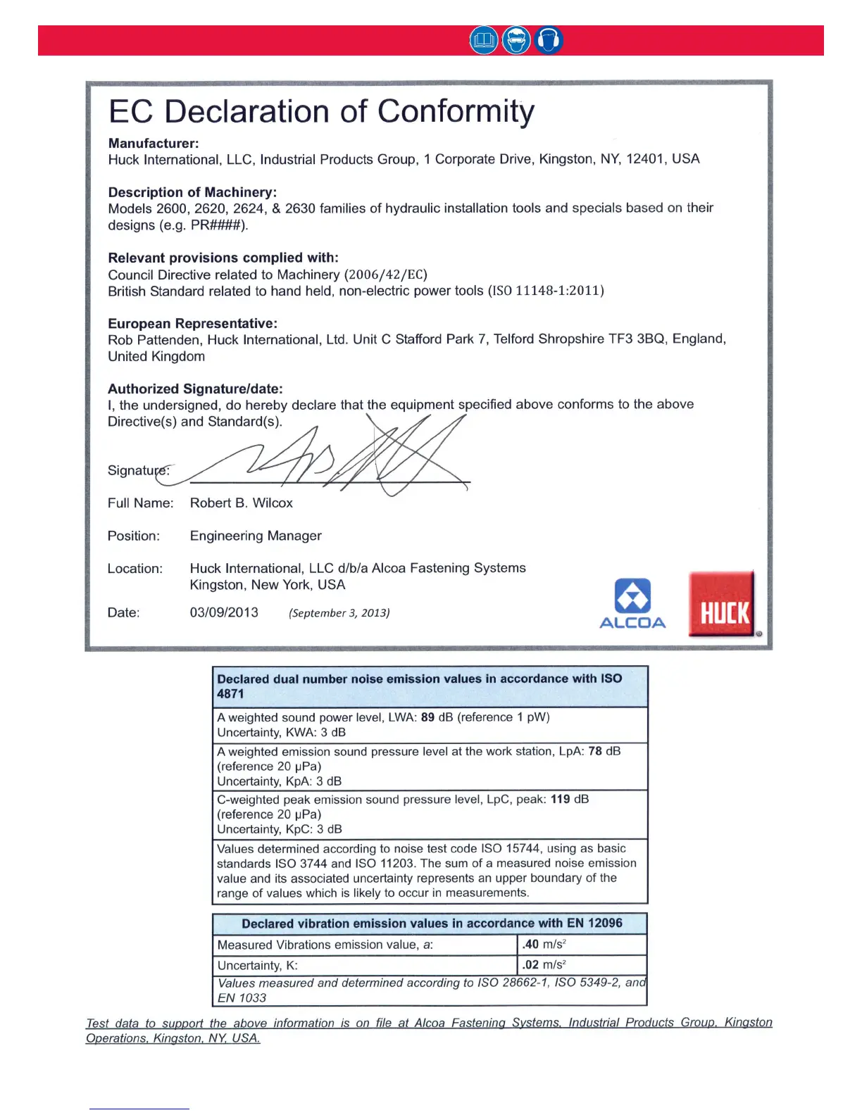 2624 & 2630 Series Hydraulic Installation Tools (HK1052) Alcoa Fastening Systems & Rings