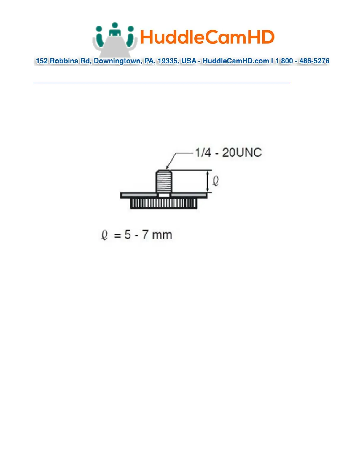 When using the HuddleCamHD camera with a tripod, screw the tripod to the bottom of