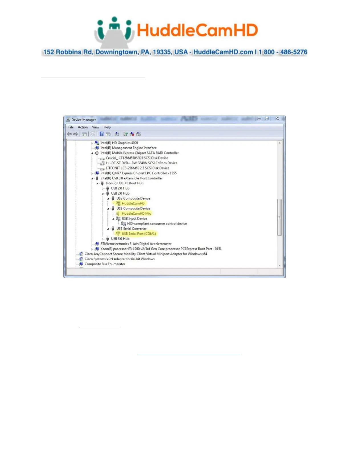 HuddleCam Cameras – Serial Control (Specific to HuddleCamHD models with virtual COM)