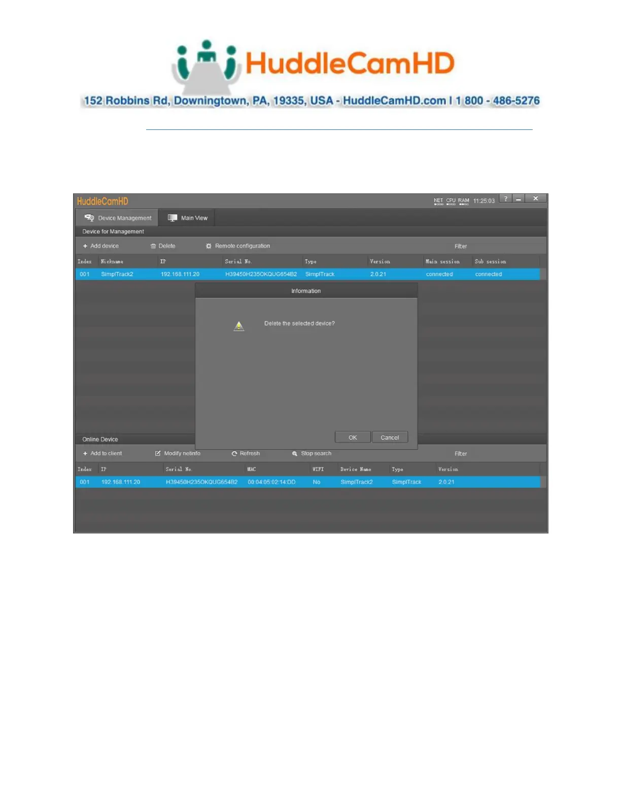 the list. You will be prompted with a confirmation window to remove the camera. Click OK to remove