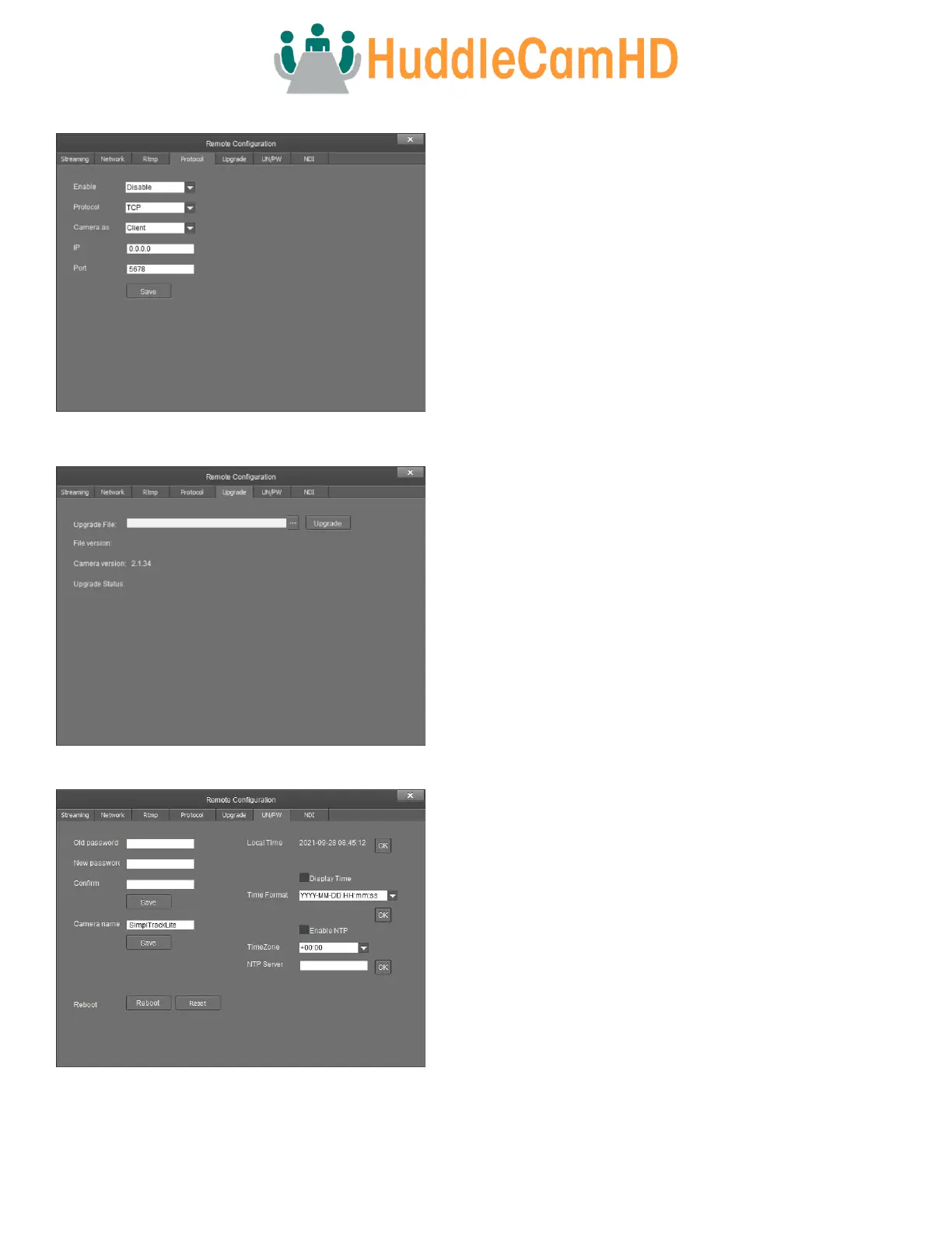 Upgrade – The Upgrade tab allows you to apply firmware updates to the camera.