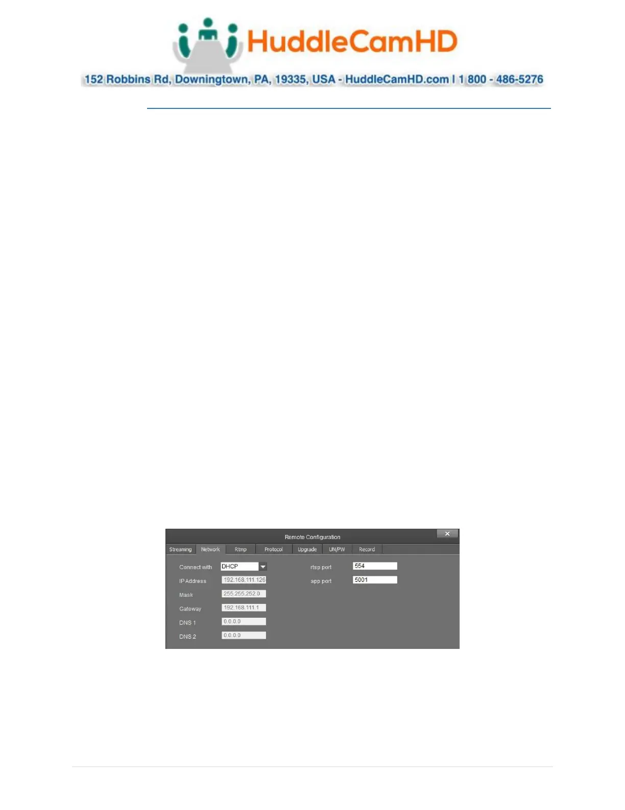 Note: While in DHCP you can only adjust RTSP Port & App Port