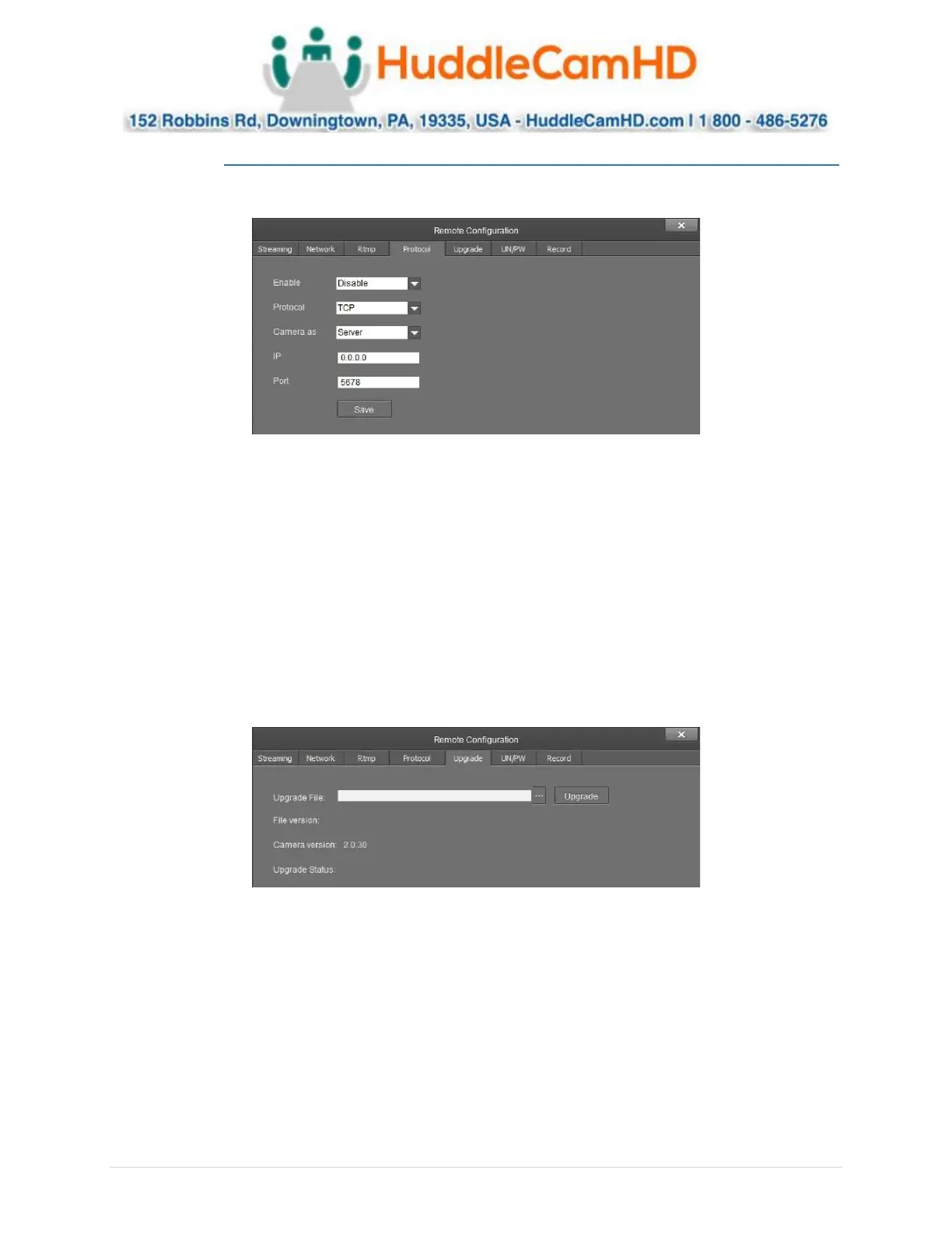 The Upgrade category allows you to upgrade the firmware of the camera.