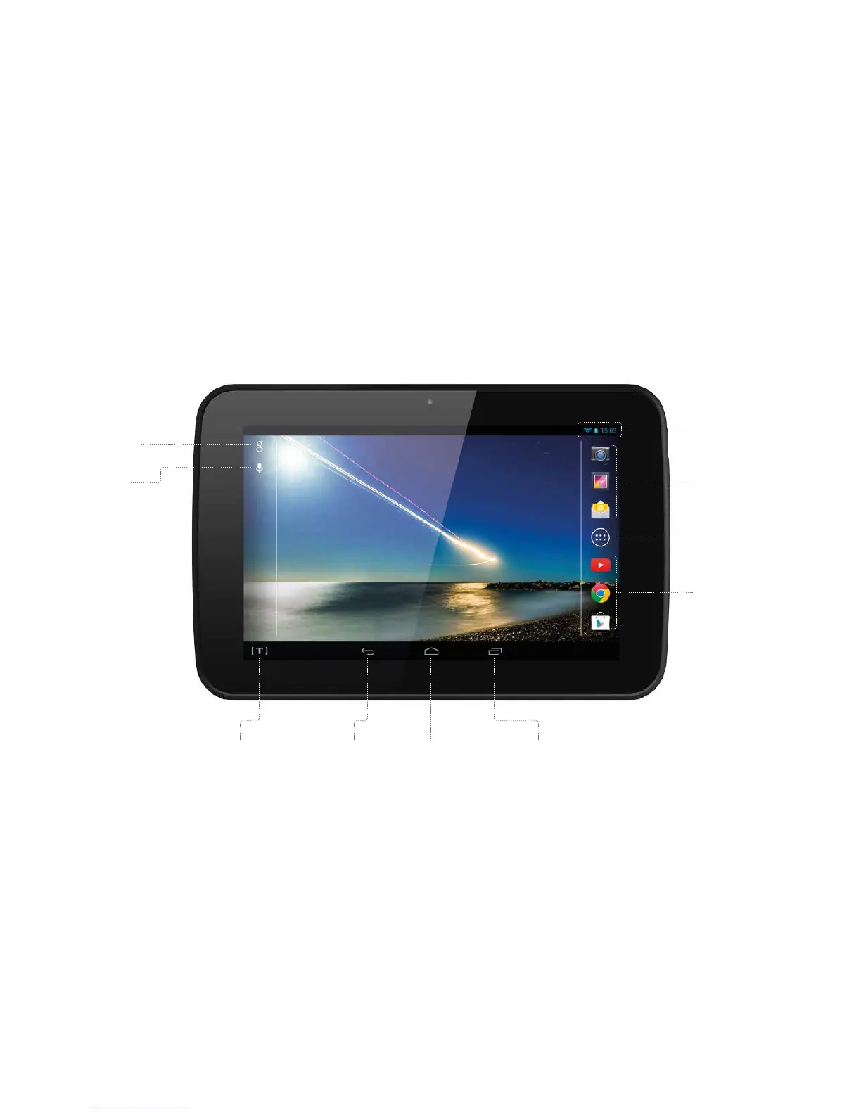 Hudl Tablet - Home Screen Layout and Navigation; Google Search and Voice Search; Status and Quick Access Areas; Navigation Bar Functions