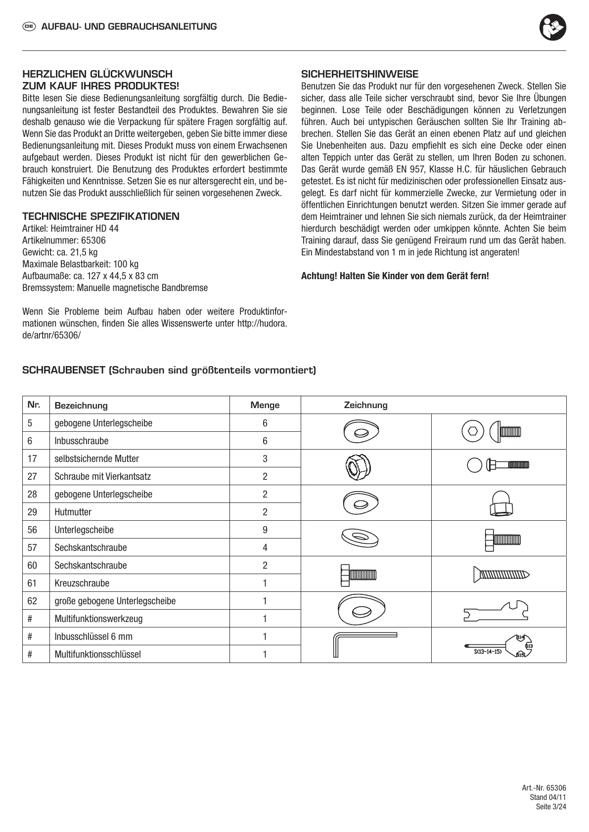 sicher, dass alle Teile sicher verschraubt sind, bevor Sie Ihre Übungen
