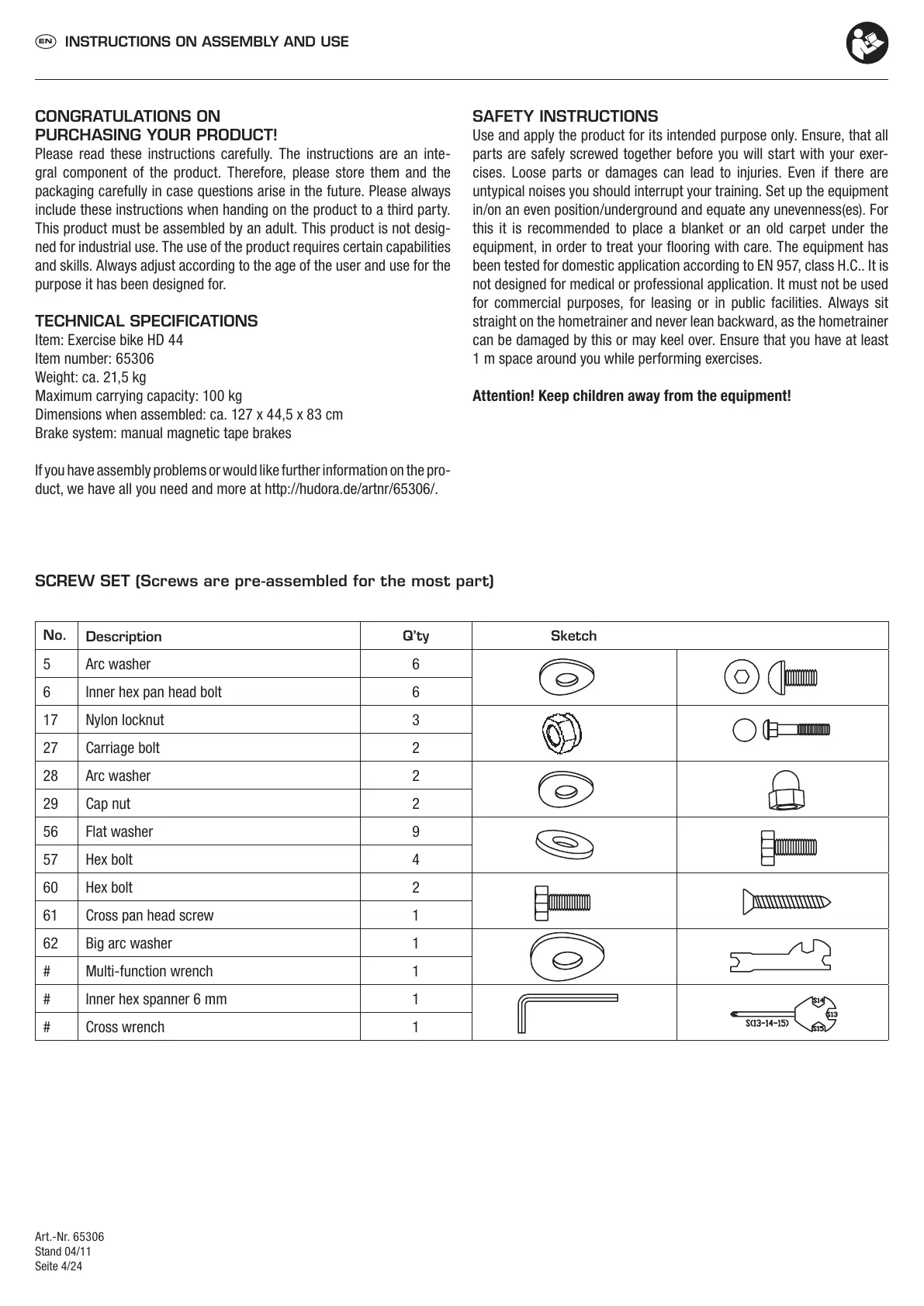 parts are safely screwed together before you will start with your exer-