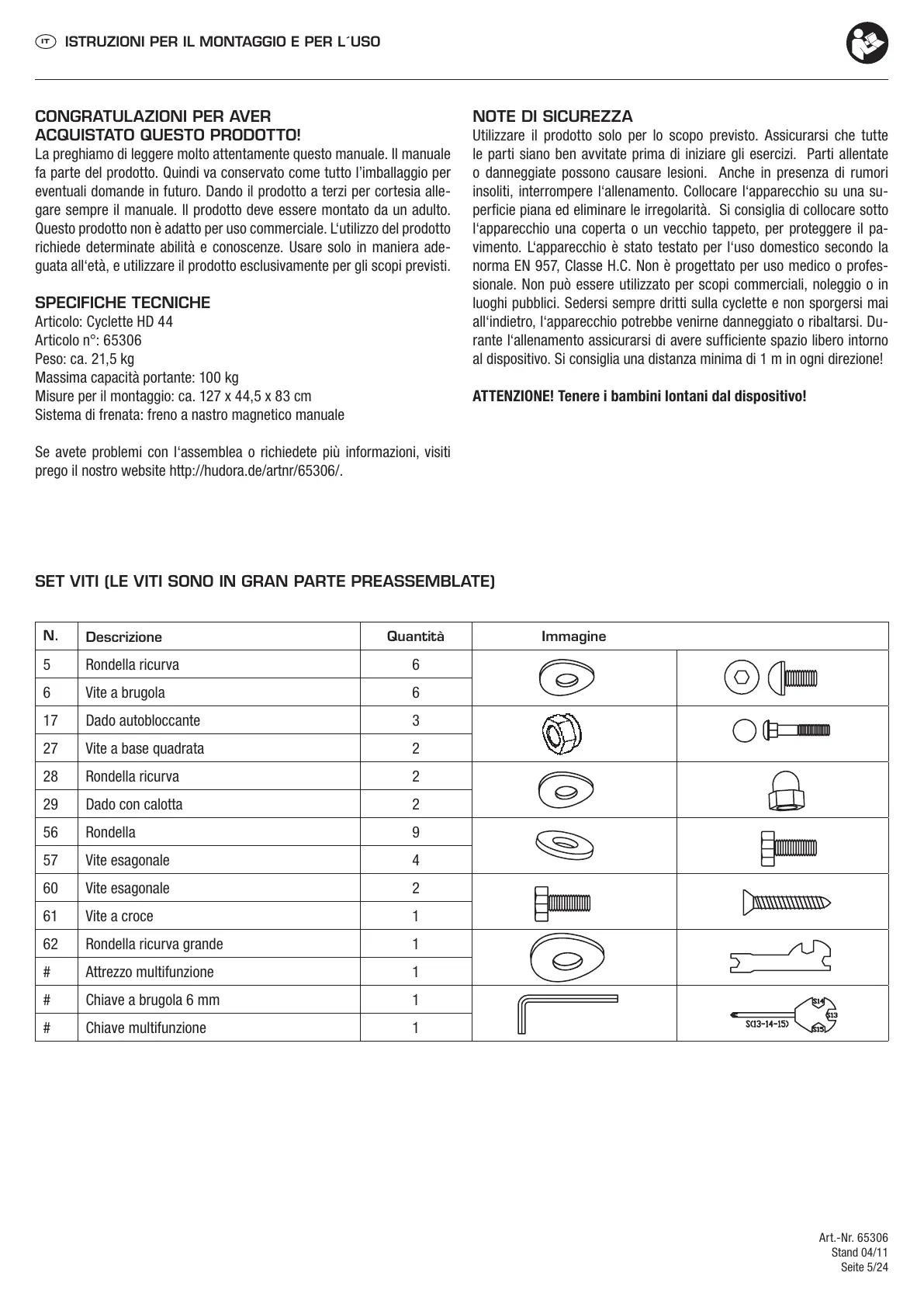 norma EN 957, Classe H.C. Non è progettato per uso medico o profes-