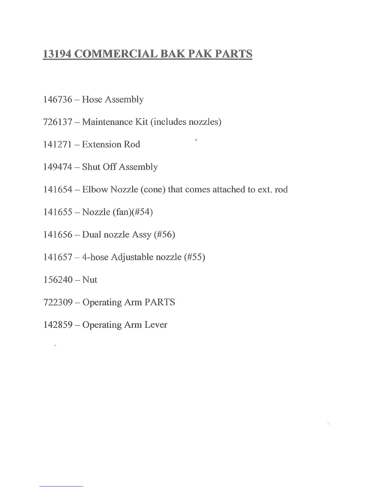 Hudson 13194 - Commercial Bak Pak Parts