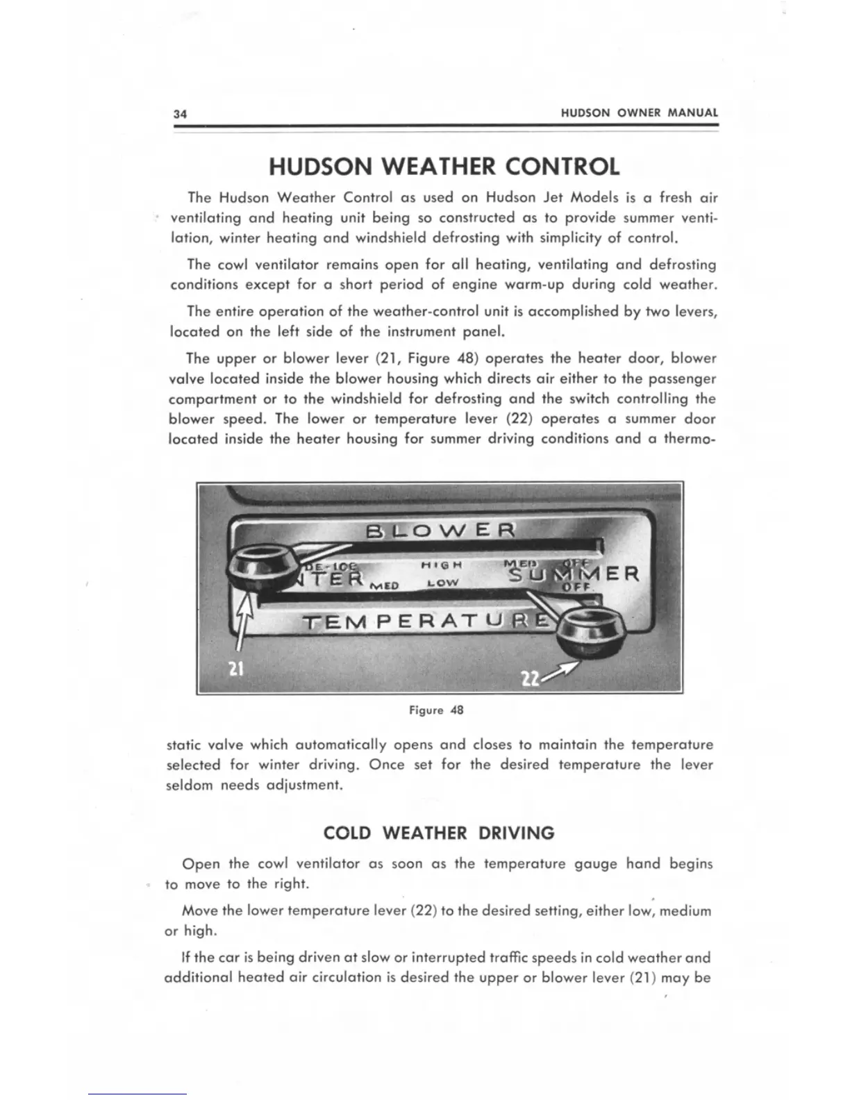 Hudson jet - Hudson Weather Control System; Cold Weather Driving Operations