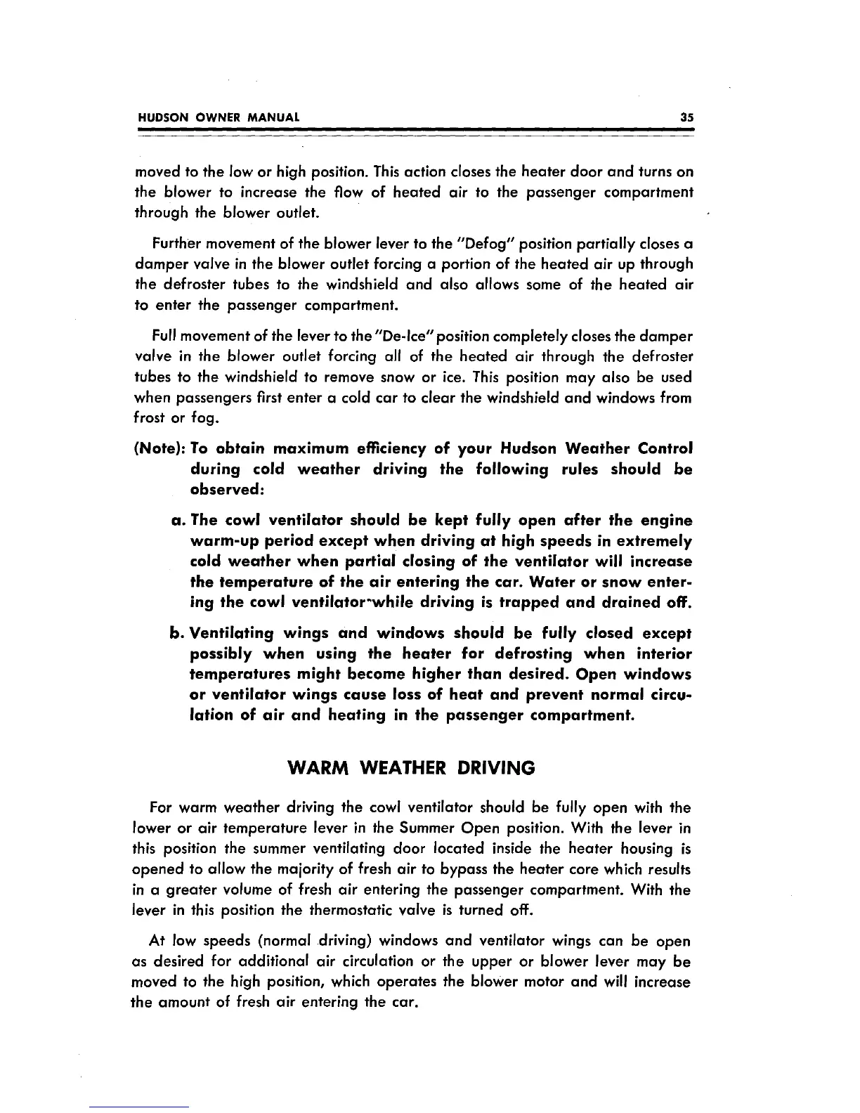 Hudson jet - Warm Weather Driving Operations