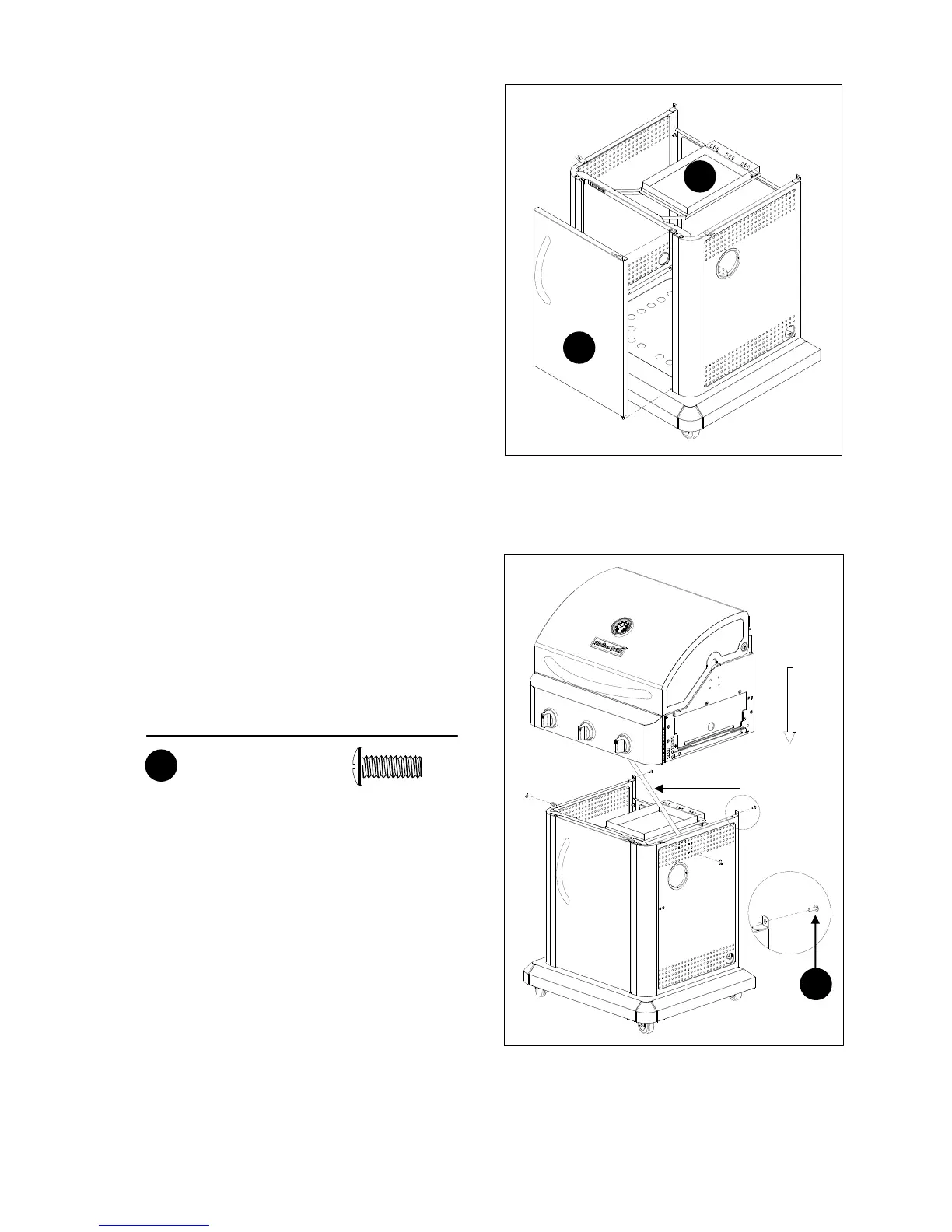 (A). Lift the burner box (A) onto the cabinet, making sure